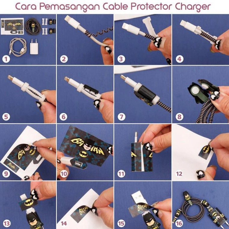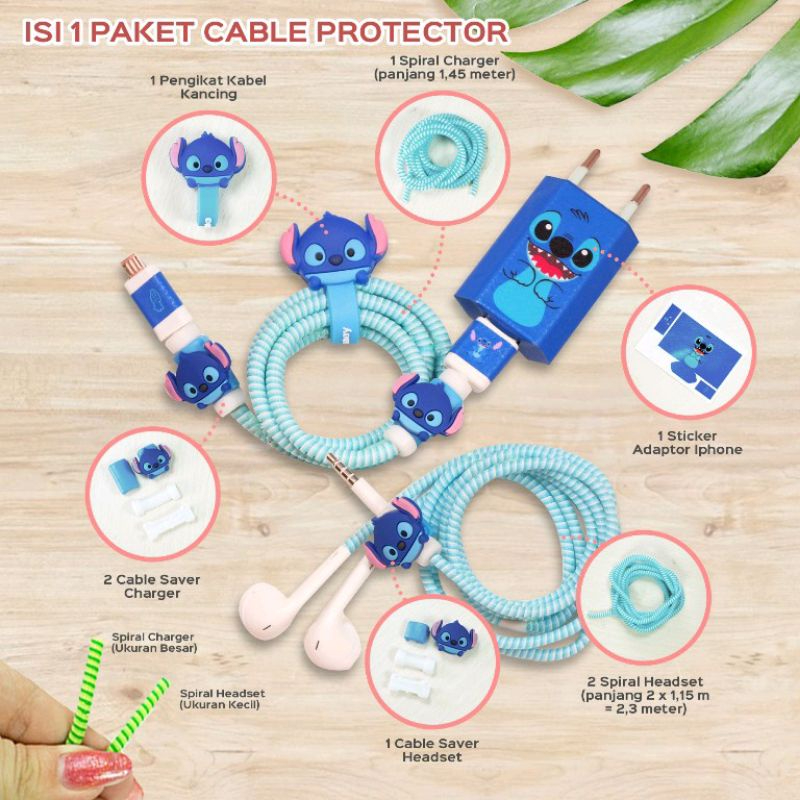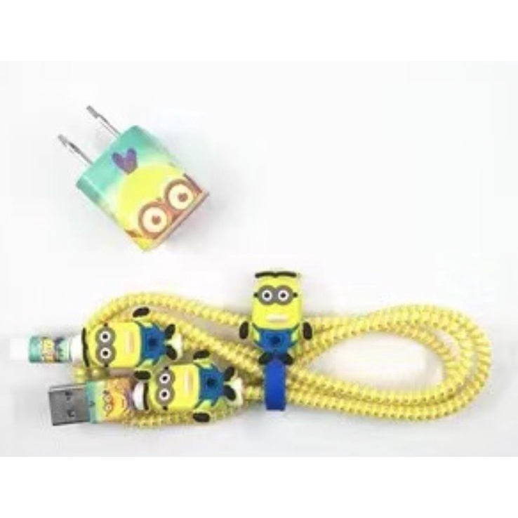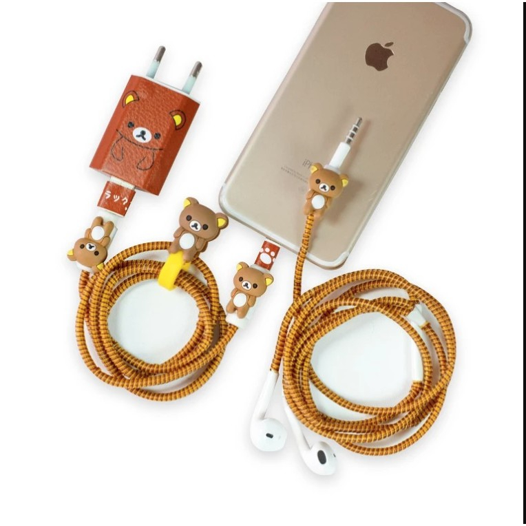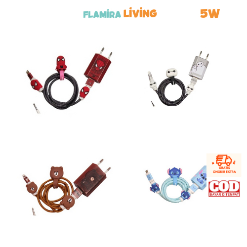 1set 5w Set Paket Cover Pelindung Stiker Kabel & Kepala Charger Untuk Charger IPhone 5w pelindung batok 5w pelindung batok karakter Pelindung Kabel Spiral Kartun Android IPhone 1 Paket
