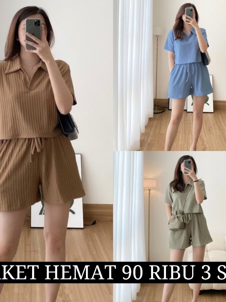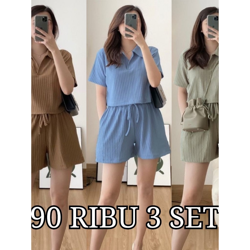 PROMO ! Paket Hemat 90ribu dapat 3 Siera Setelan Crop Oneset Hornet Wanita Premium Termurah Knit One Set Terbaru Ootd Viral