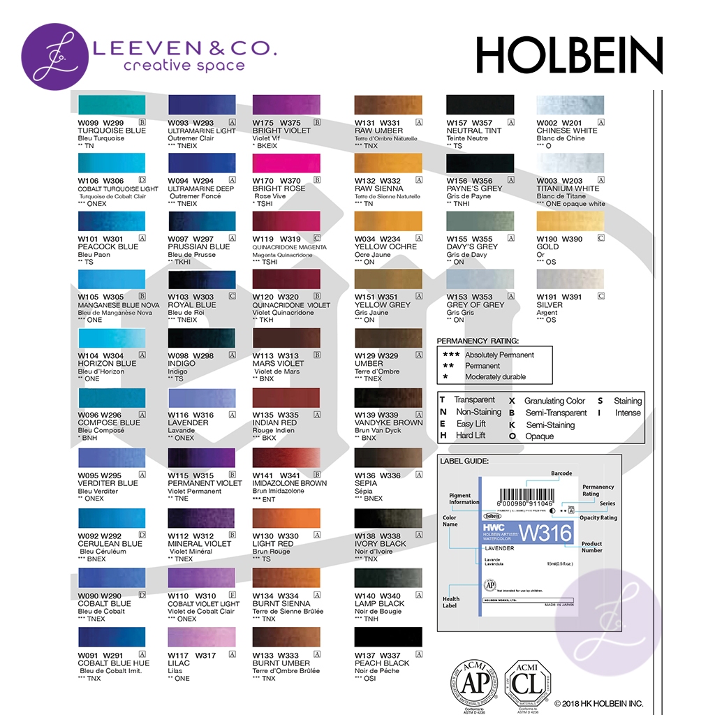 HOLBEIN ARTIST WATERCOLOR TUBE 15ML BROWN / GREY / BLACK SERIES A