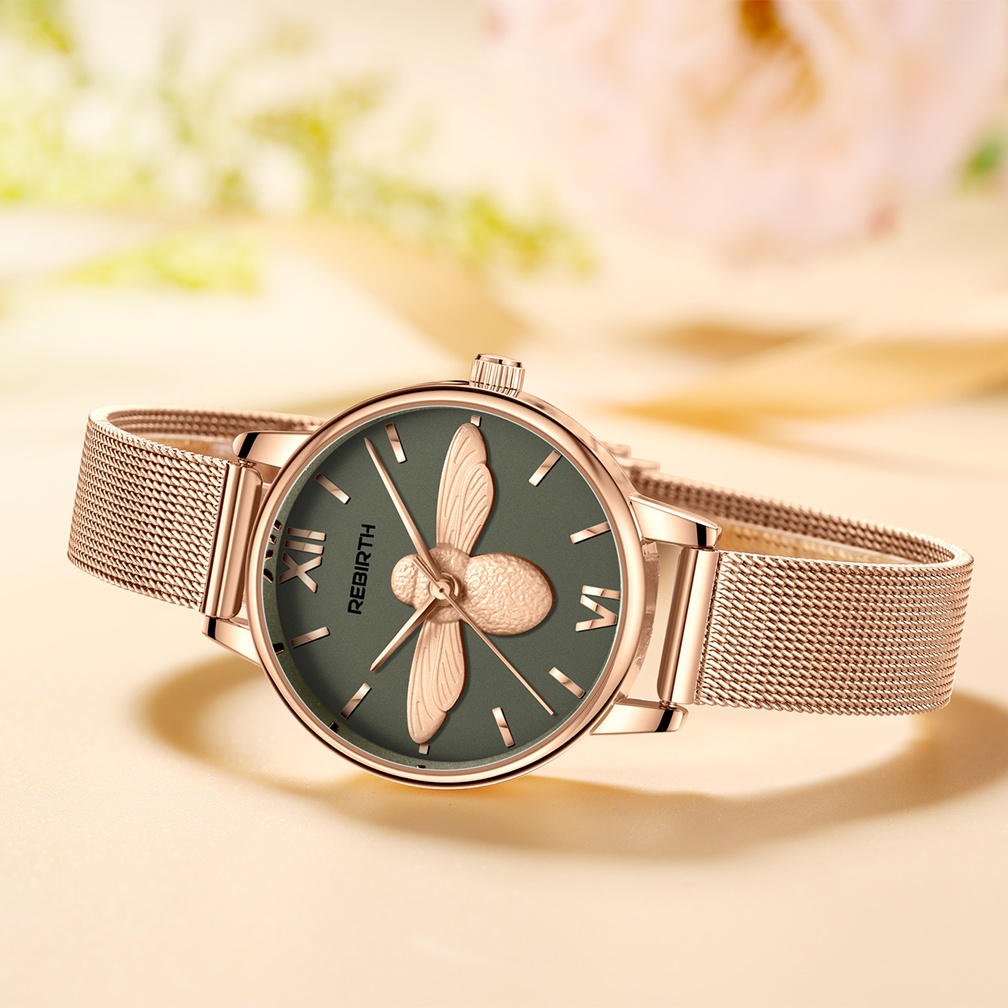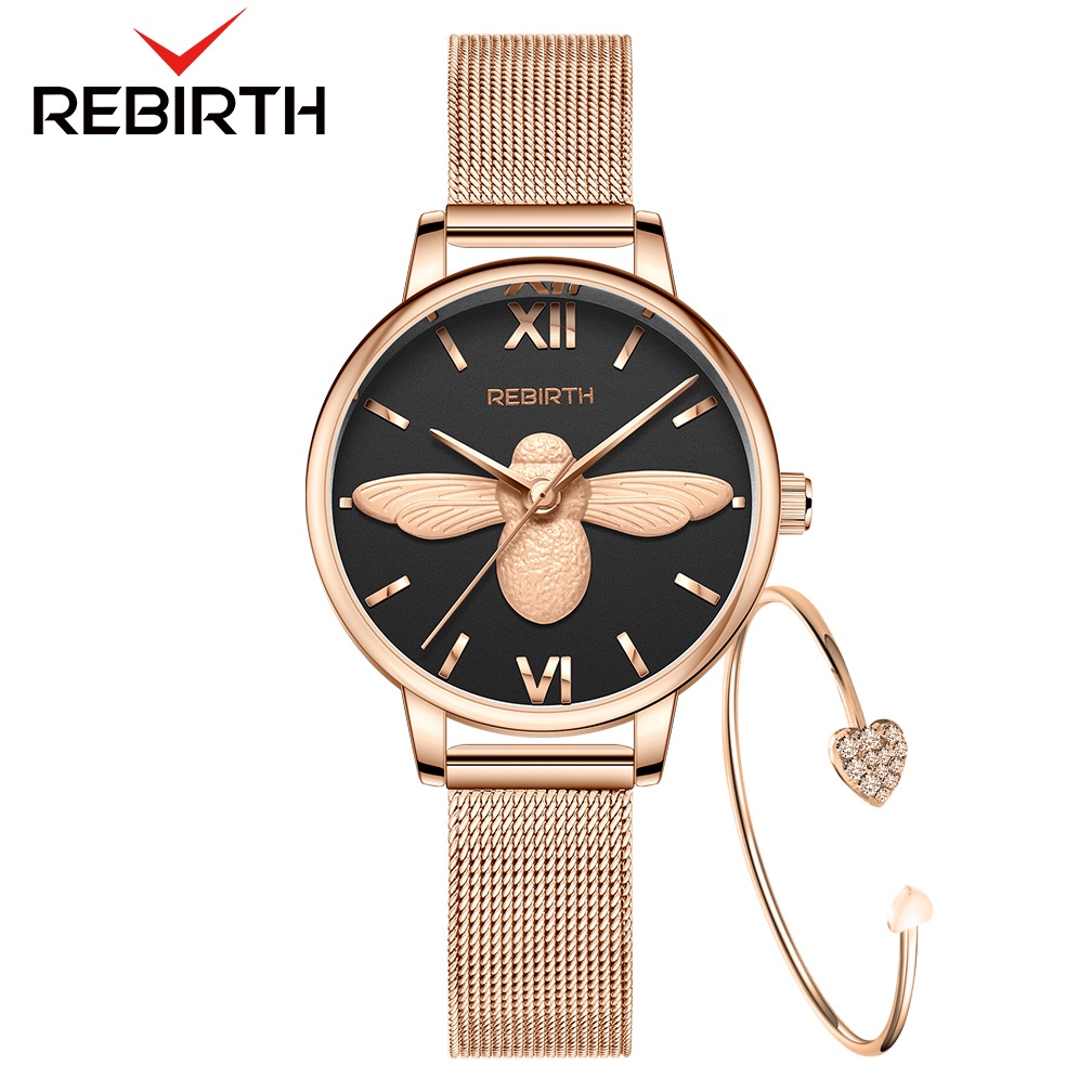 REBIRTH Jam Tangan Wanita Anti Air Original 3D Lebah Dial Fashion Korea Kuarsa Tali Jala Jam Tangan Cewek