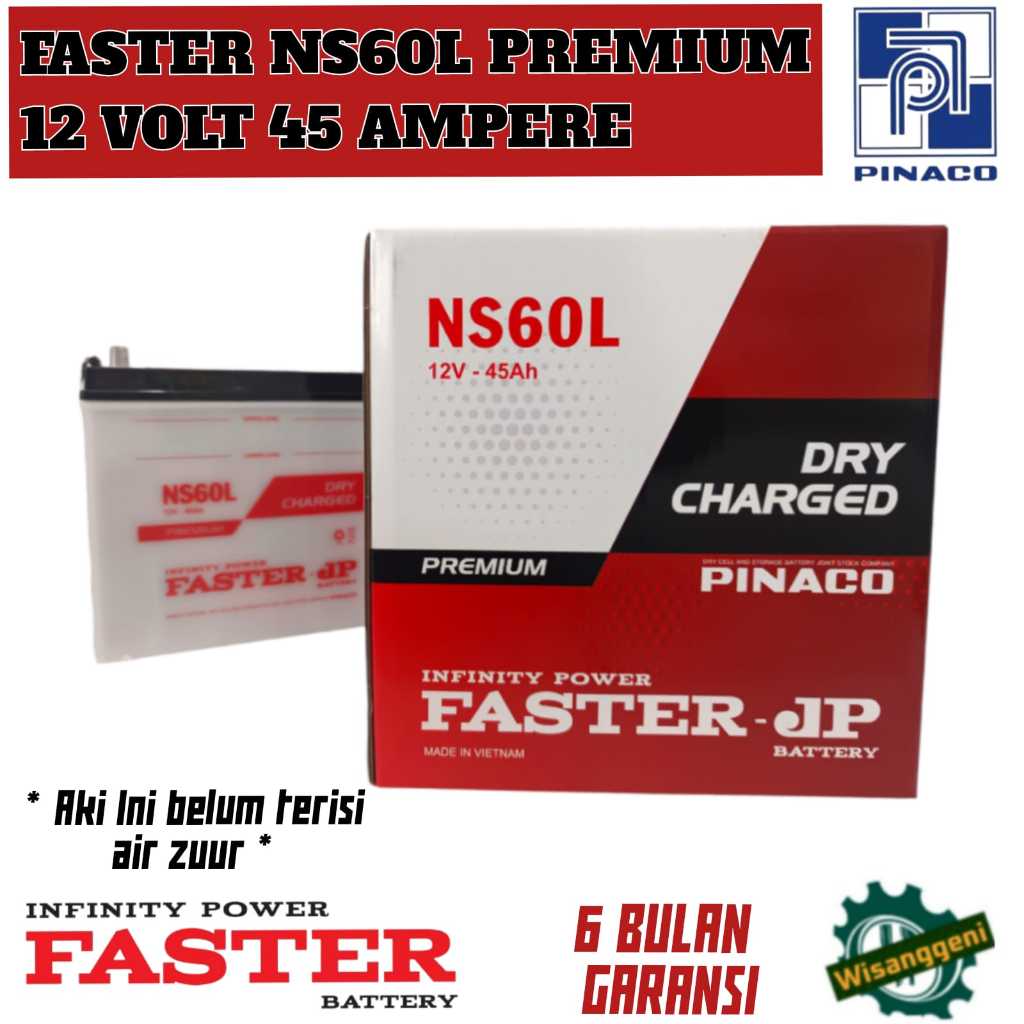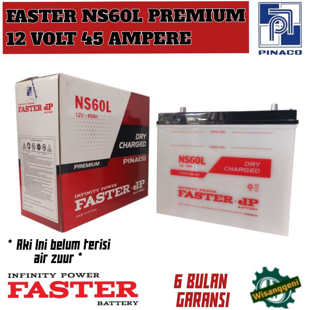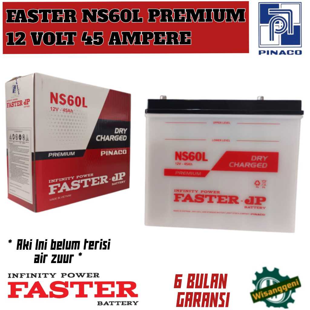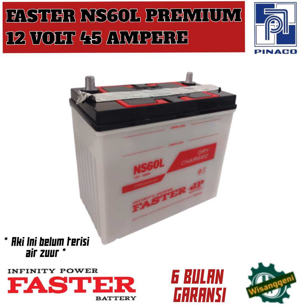 Aki Mobil Grand Livina/Corolla Series/Honda City/Travela/Karimun/Baleno/Capella FASTER NS60L PREMIUM 45 AH