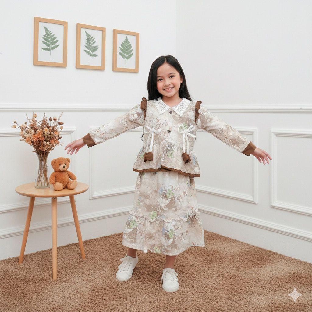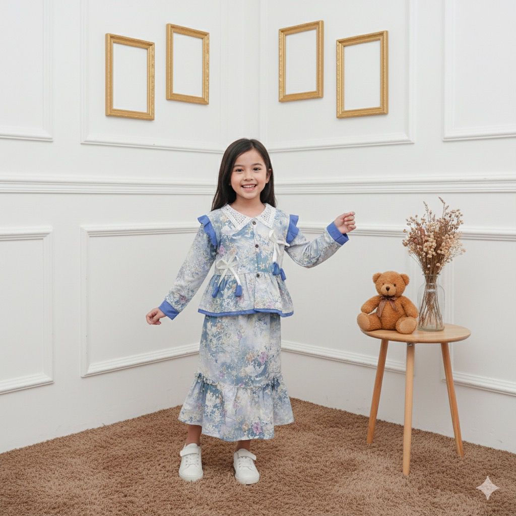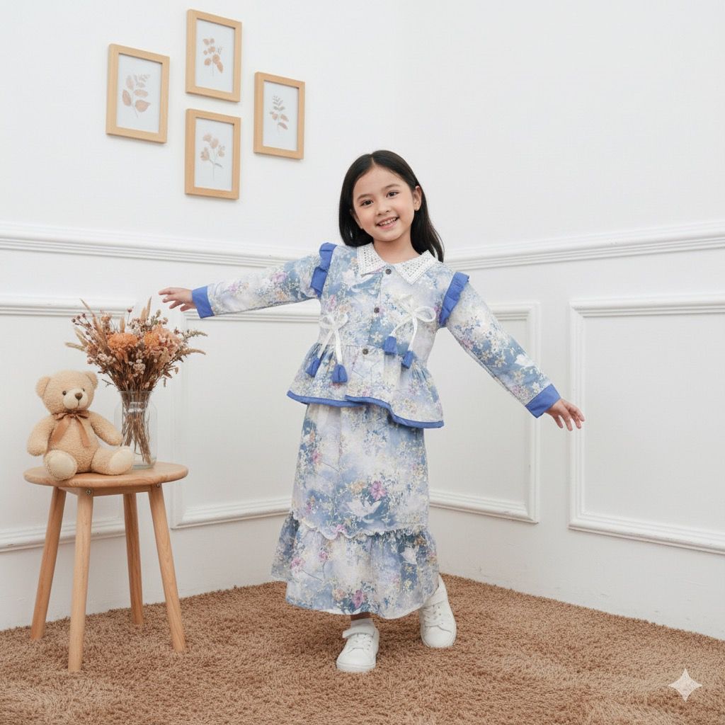 Setelan Rok Anak Perempuan Azura Katbol Katun Bordir Kerah Renda Variasi Pita Full Puring 1-10 Tahun