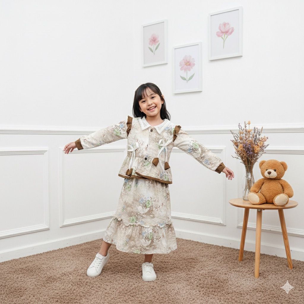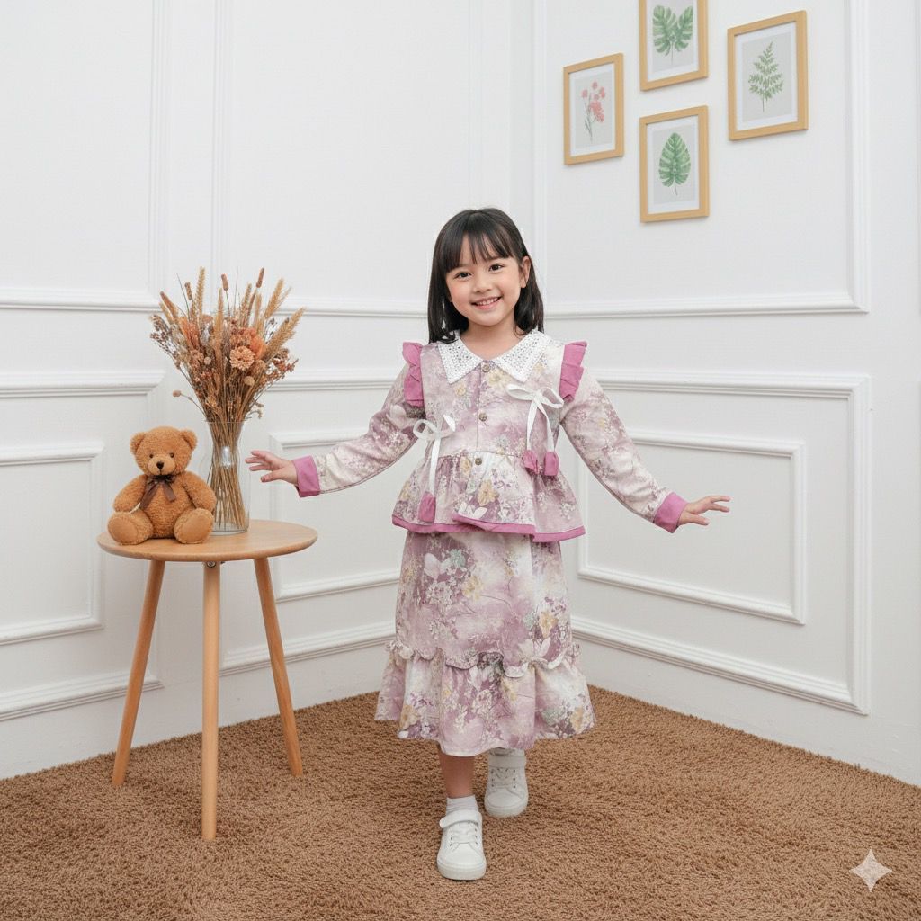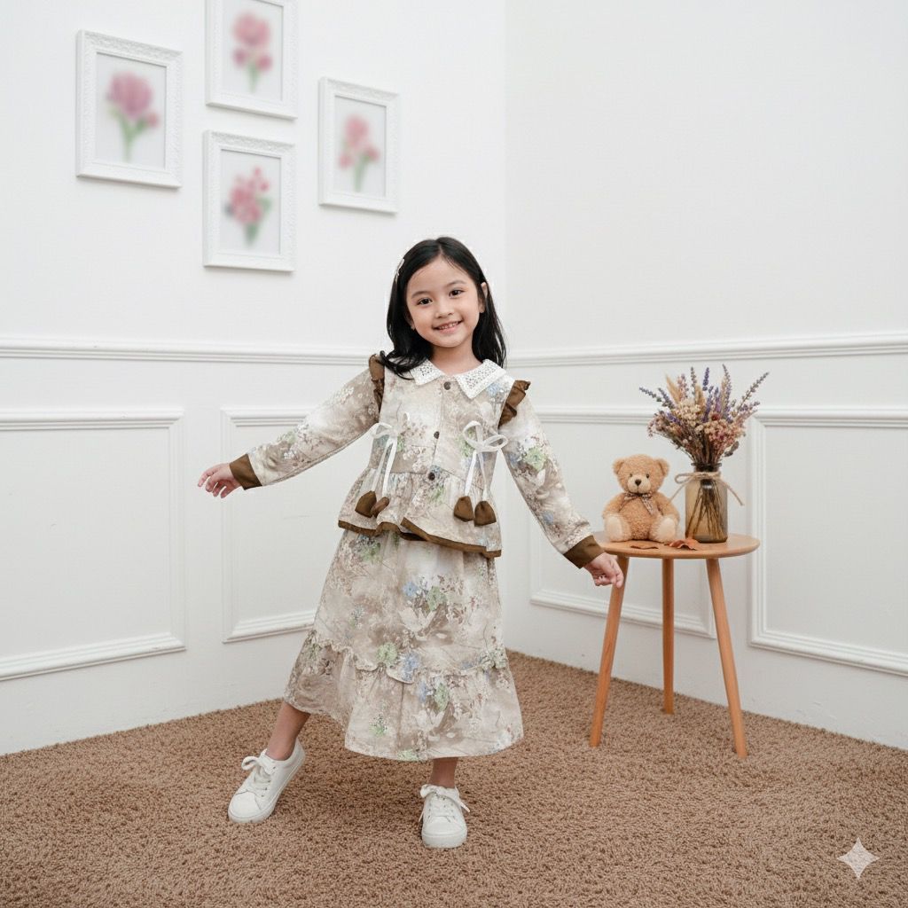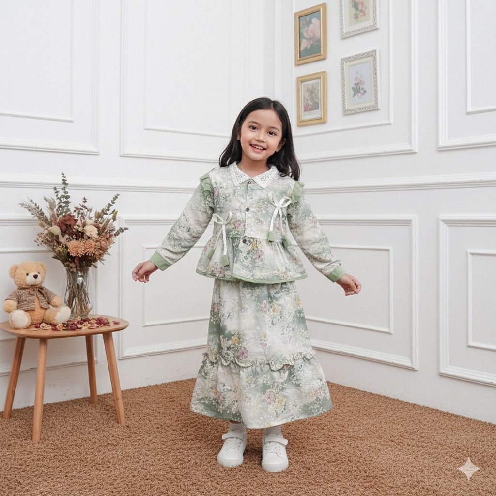Setelan Rok Anak Perempuan Azura Katbol Katun Bordir Kerah Renda Variasi Pita Full Puring 1-10 Tahun