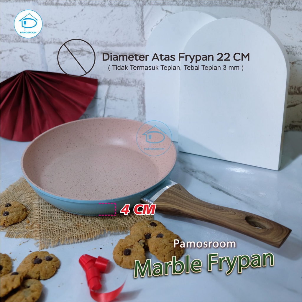 Pamosroom Mini Frypan 16cm Mini Wok Pan Teflon Marble Wajan Mini Goreng Telur Anti Lengket 16cm