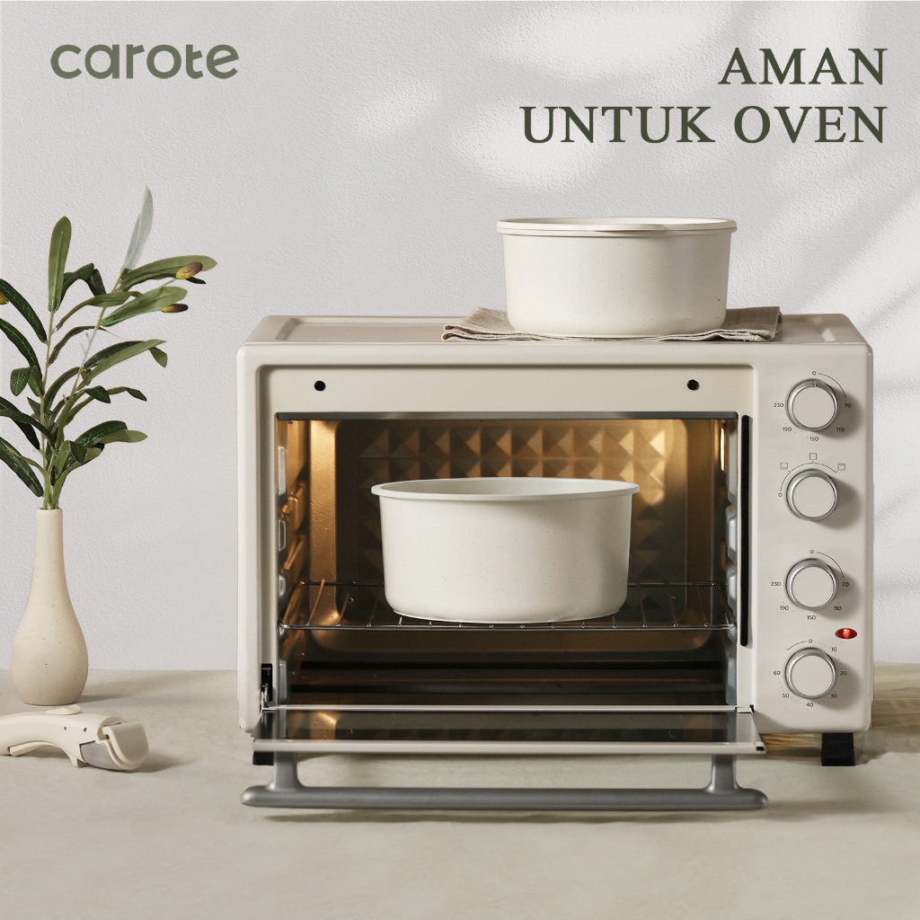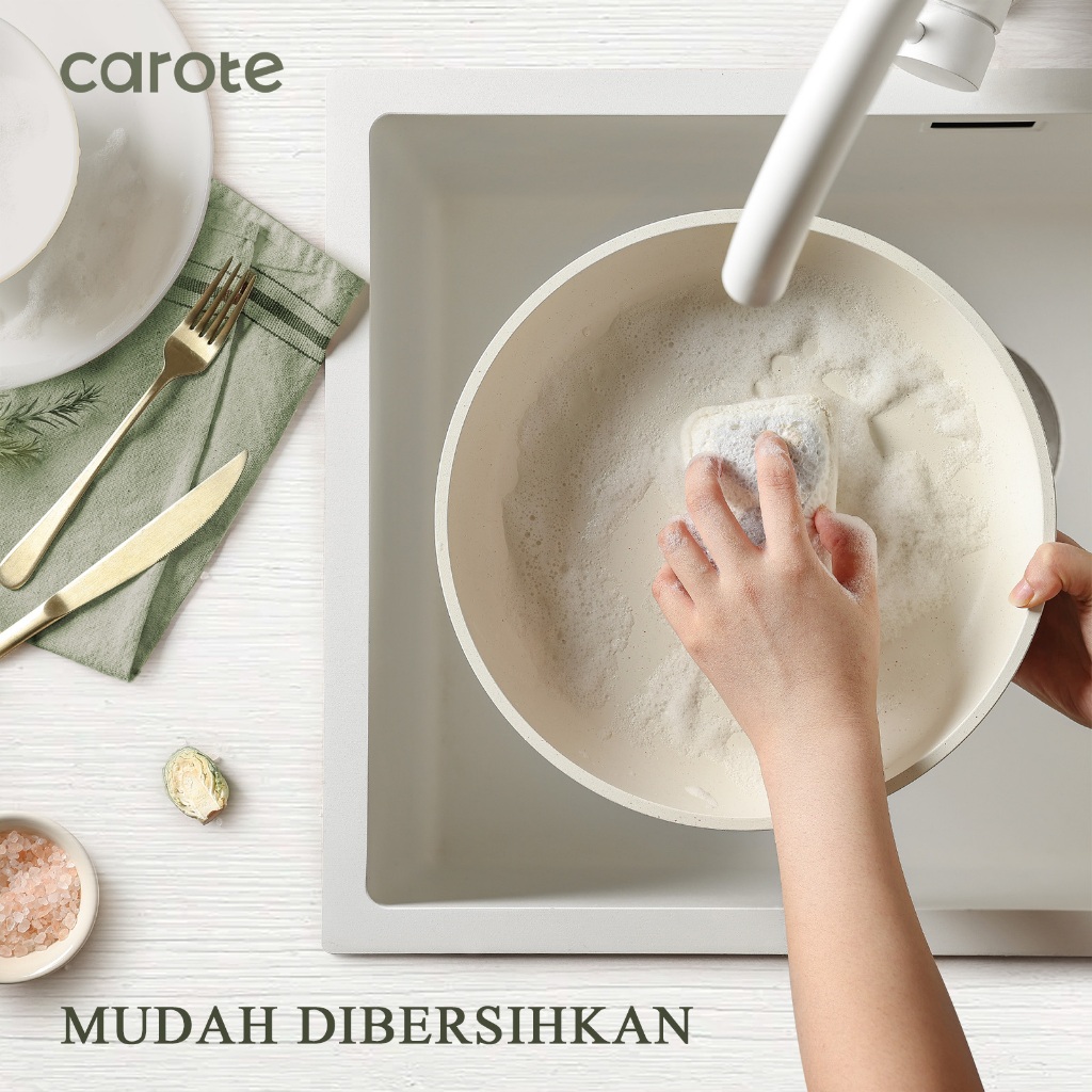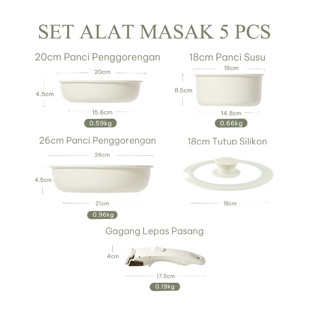 CAROTE Peralatan Masak Set 5 PCS Dengan Gagang Lepas Pasang Memudahkan Penyimpanan Lapisan Granit Cocok Untuk Semua Jenis Kompor Aman Untuk Oven Panci Susu Wajan Penggorengan Free PFOA Garansi 1 Tahun Ice Vanilla Putih