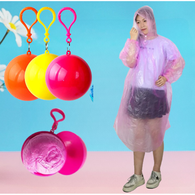 HL0478 Jas Hujan Bola Plastik Jas Hujan Portable Dengan Gantungan Bola Kunci Serbaguna