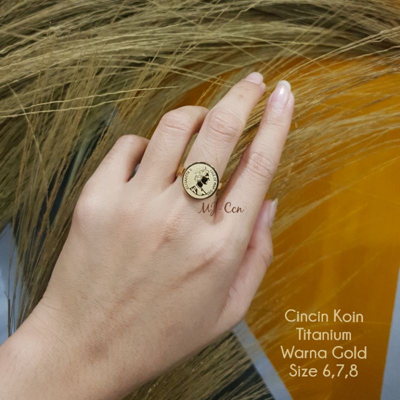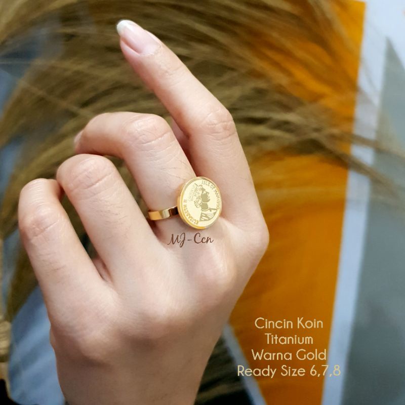 Cincin Koin Titanium - Lapis emas 18k, awet tahan lama