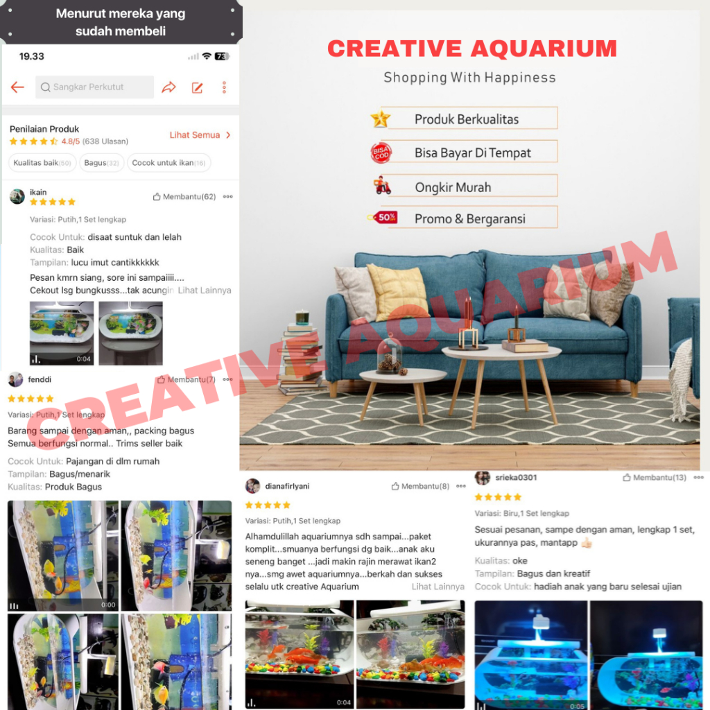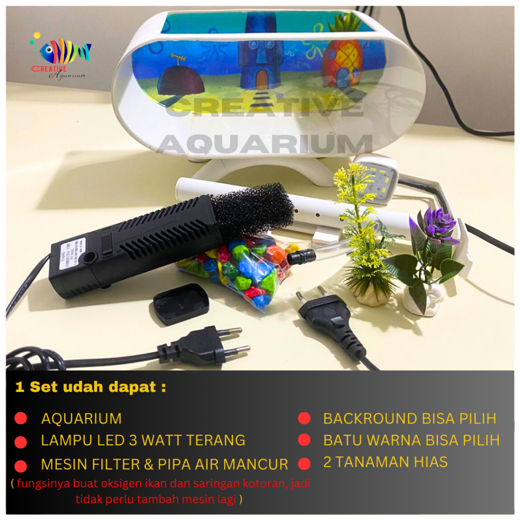 [COD] 1 SET AQUARIUM AKRILIK CUPANG MINI PLUS MESIN AERATOR AIR MANCUR DAN LAMPU LED AQUARIUM BB002