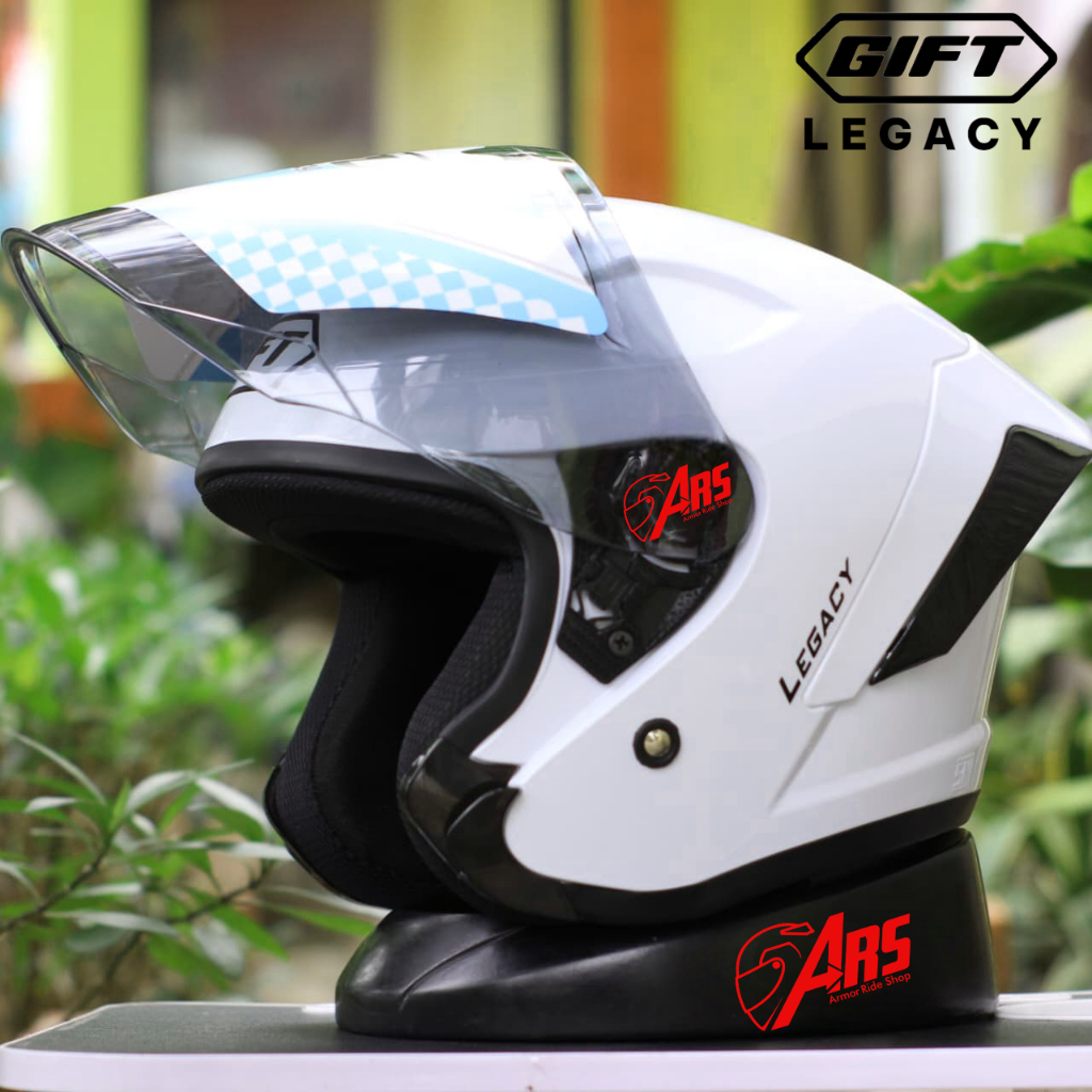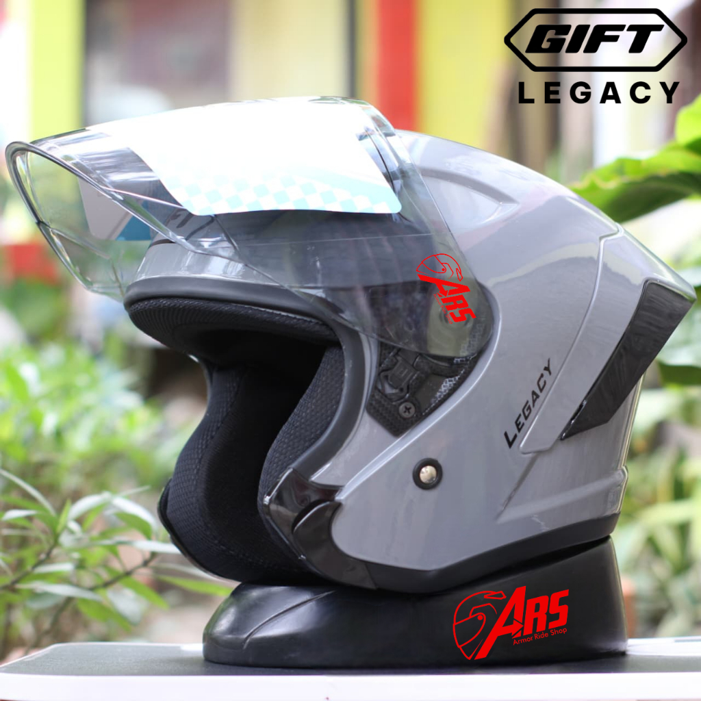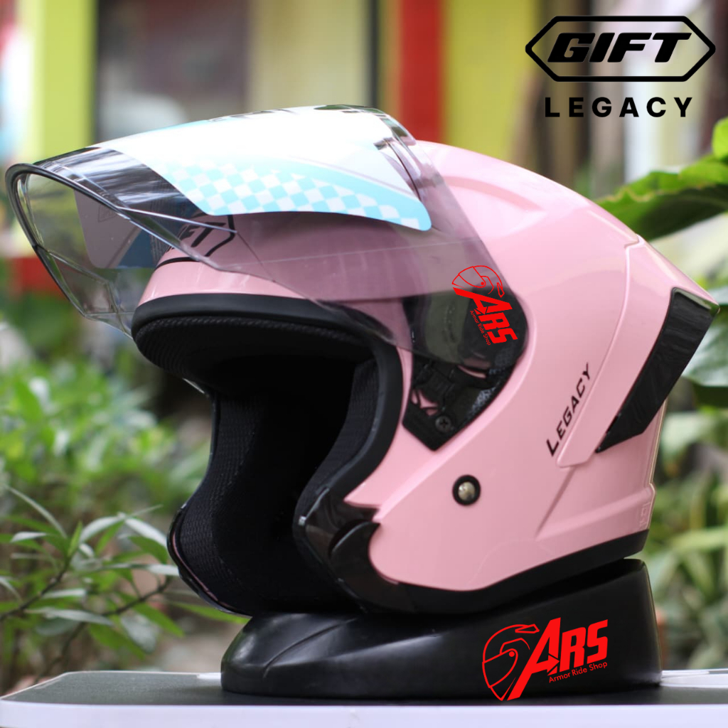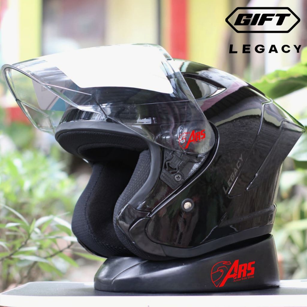 Helm Gift Legacy Half Face Paket ganteng Stylish – Helm Motor Pria Wanita SNI, Busa Tebal Nyaman