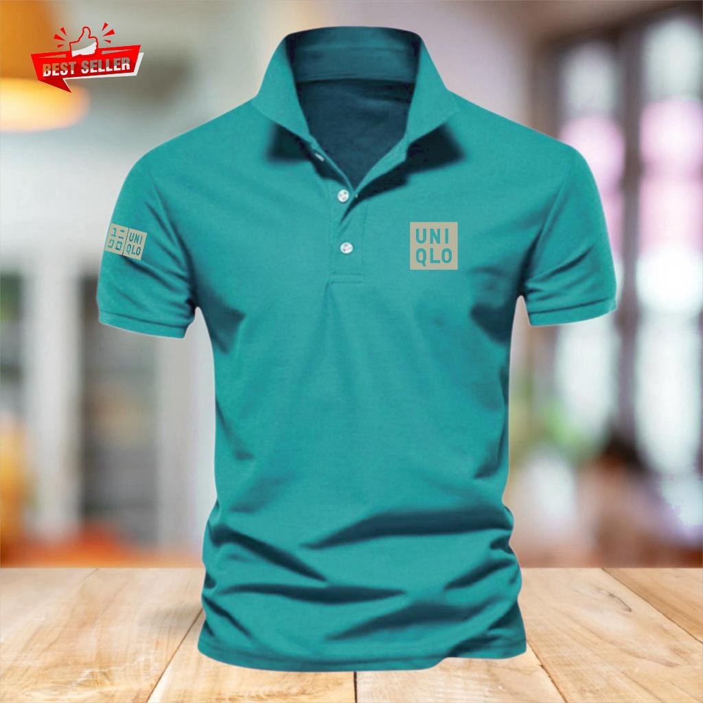 TERBARU !!! Polo Kerah UNIKLO + LENGAN Text SILVER Baju Polo Motif Giordano 8 Quality Premium Bahan Pique, Bisa Di Pakai Cewek Cowok Atasan Dewasa