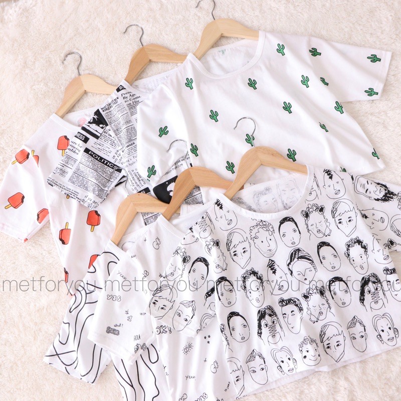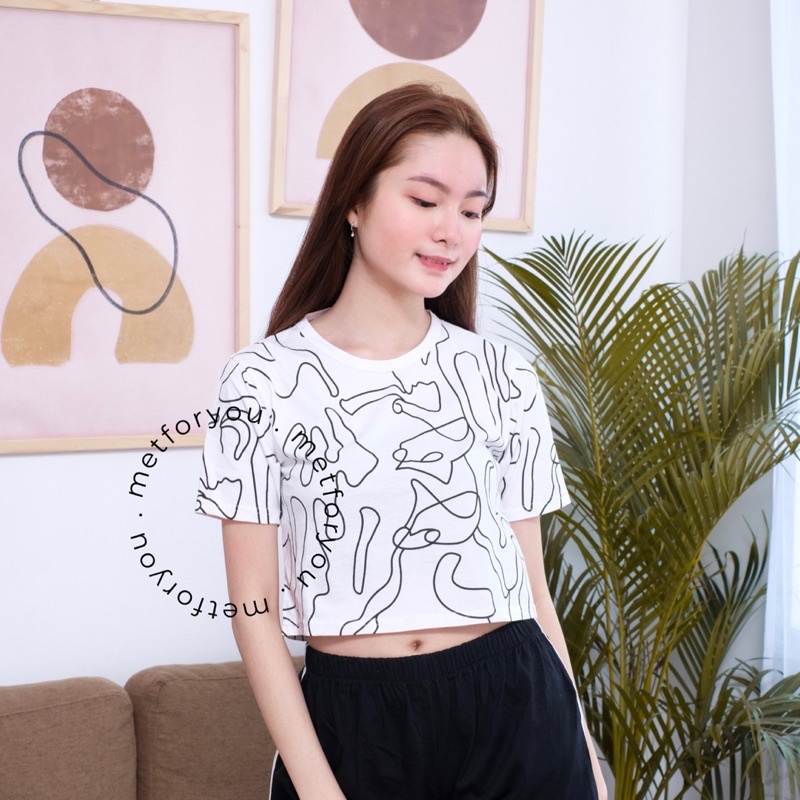 METFORYOU Kaos Crop Top Wanita - Full Print Series Tee
