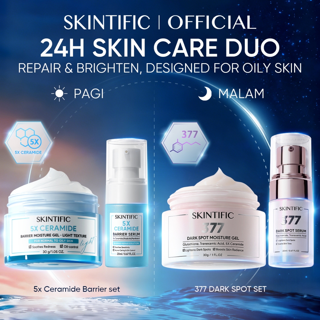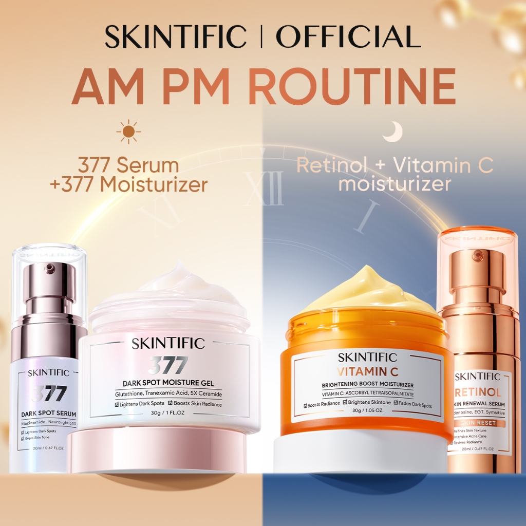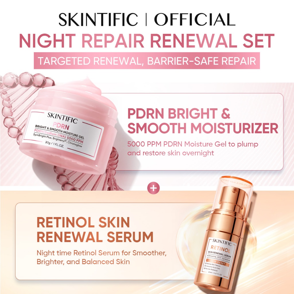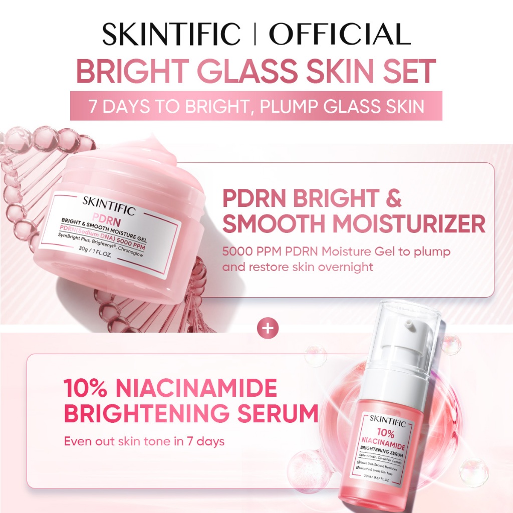 [4PCS]SKINTIFIC Day & Night Skincare Set – Paket Perawatan Wajah – Semua Jenis Kulit –Glass Skin/ Bright & Smooth/Dark Spot/Anti Aging/Barrier Repair/Sensitive Care – Serum + Moisturizer Bundle – PDRN Day Cream & Night Cream Skincare BPOM Official Store