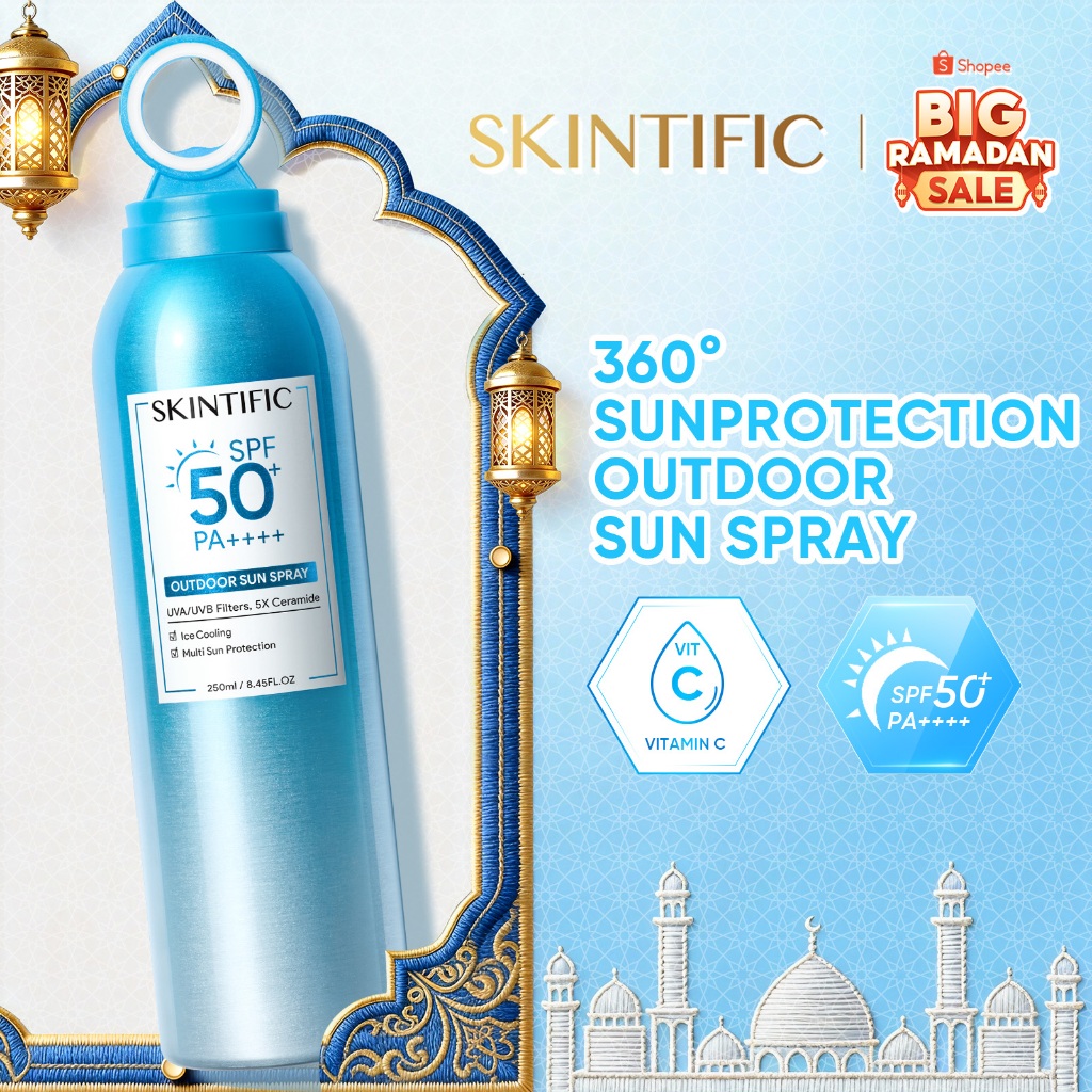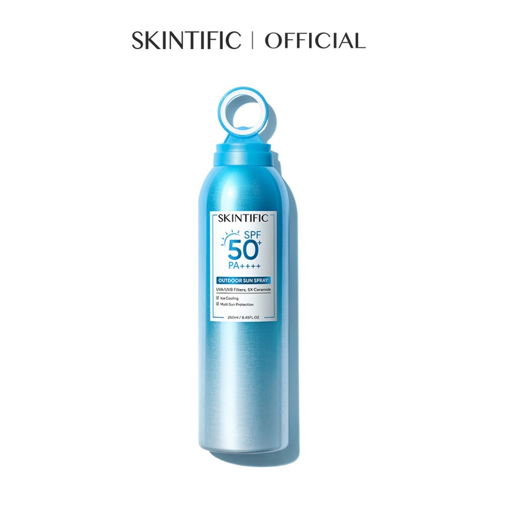 SKINTIFIC - Outdoor Sunscreen Spray SPF 50+ PA++++ 250ml | UV Mist Tone Up Sun Shield Sunscreen Whitening Glowing BPOM Barrier Anti-Aging Brightening Whitening Mencerahkan Wajah Melindungi Kulit dari Sinar UVA UVB with UVA/UVB Filter&5X Ceramide