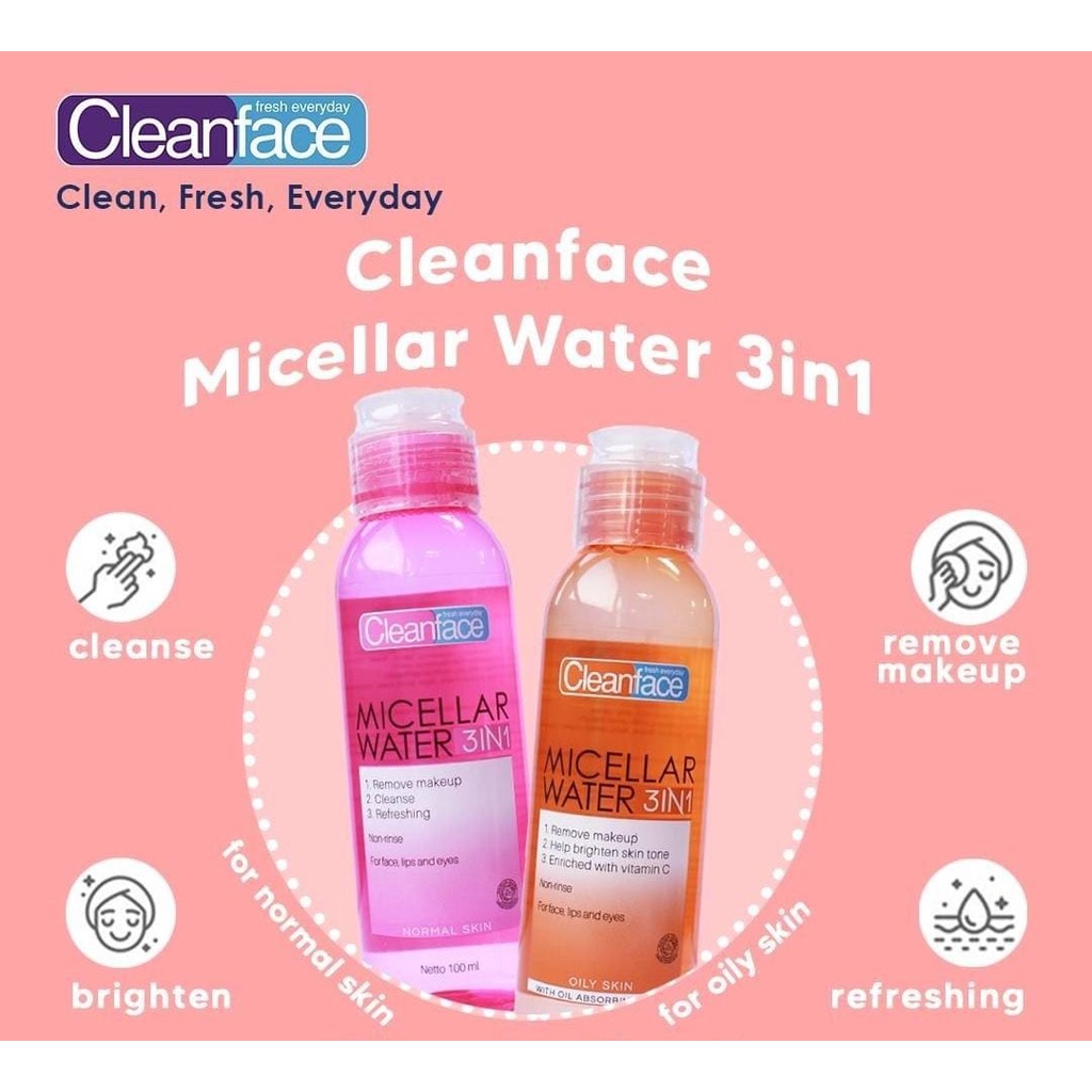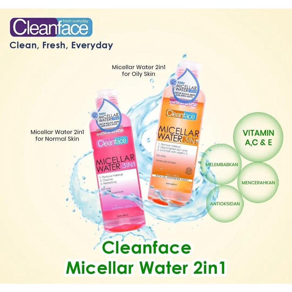 CLEANFACE Purbasari Clean Face Micellar Water 3in1 Normal Oily Skin 100ml / 250ml