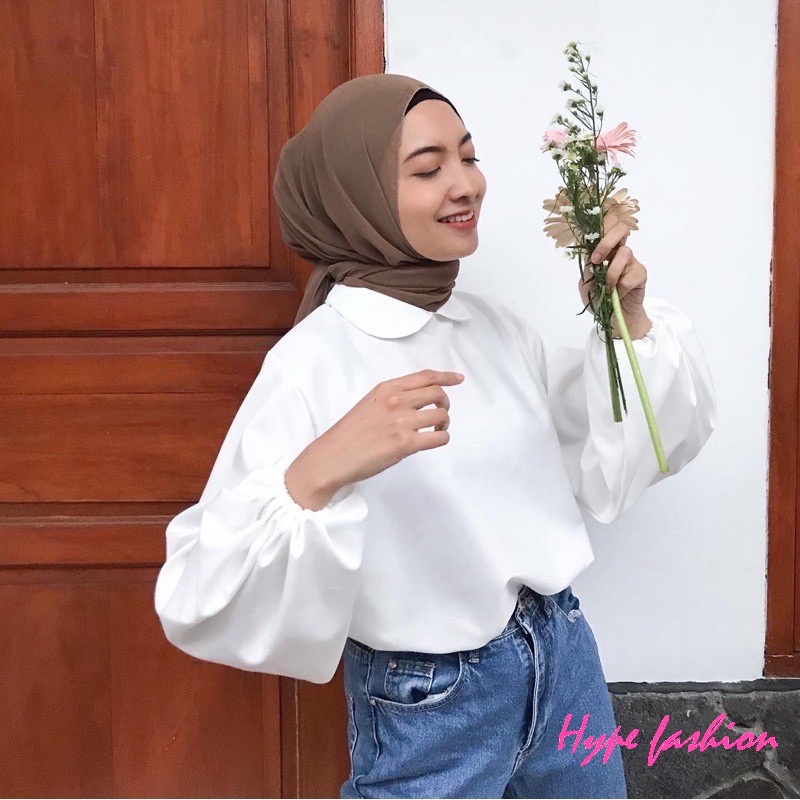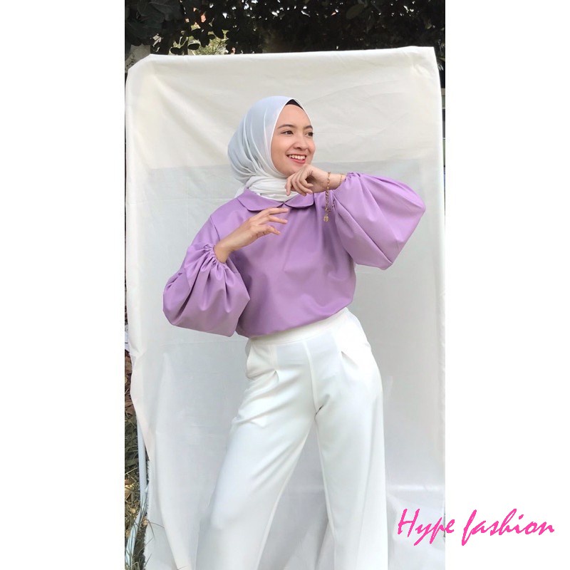HYPE FASHION - Sonya Basic Shirt Lengan Balon Blouse Wanita