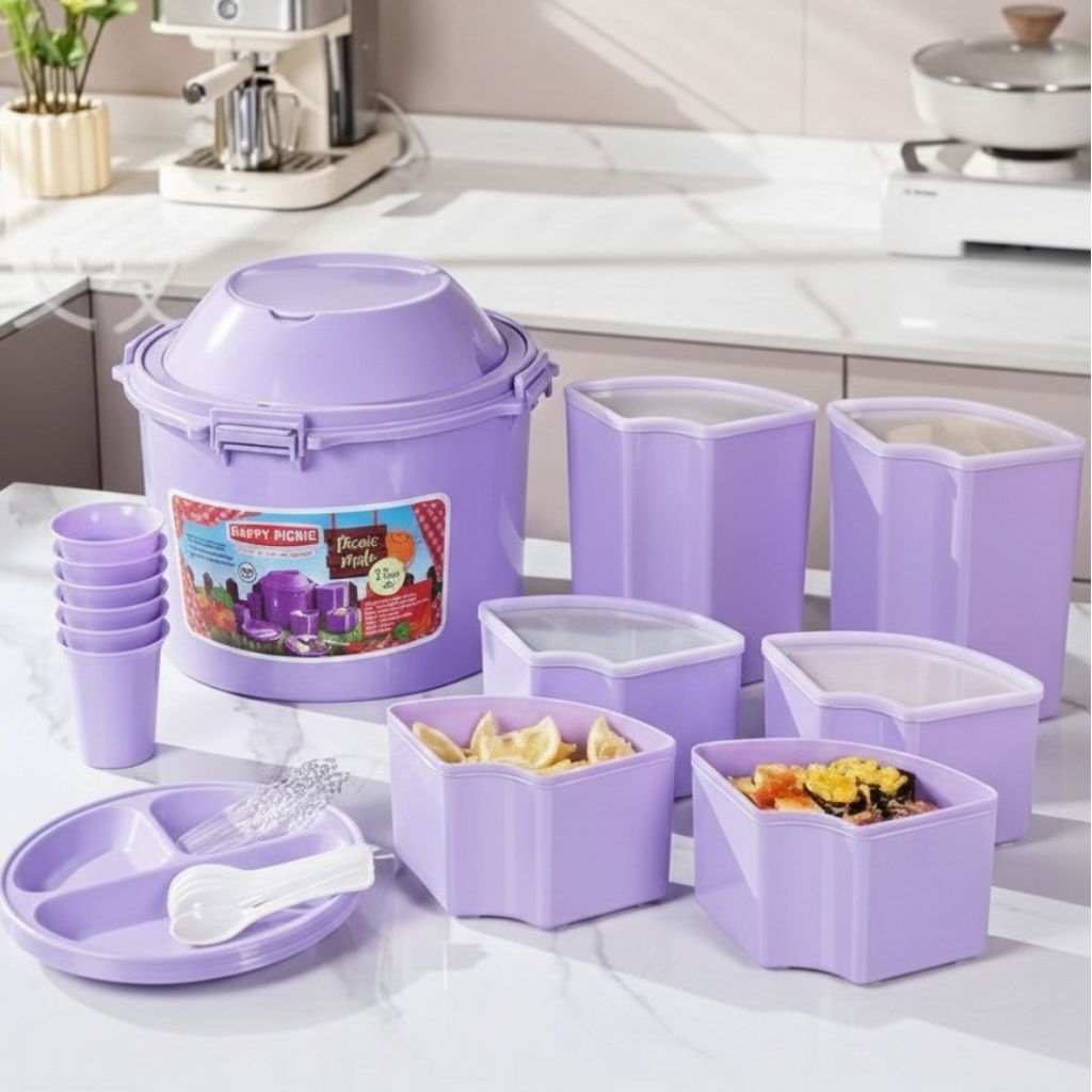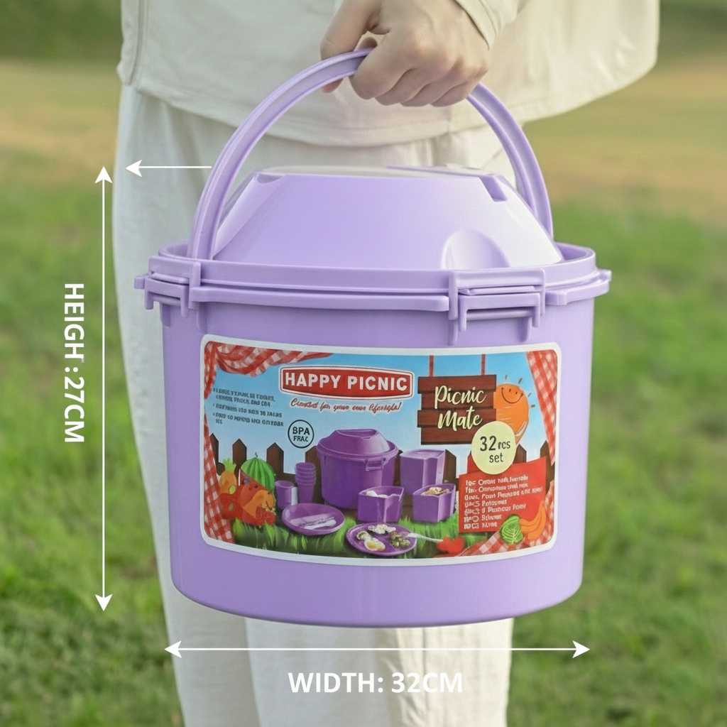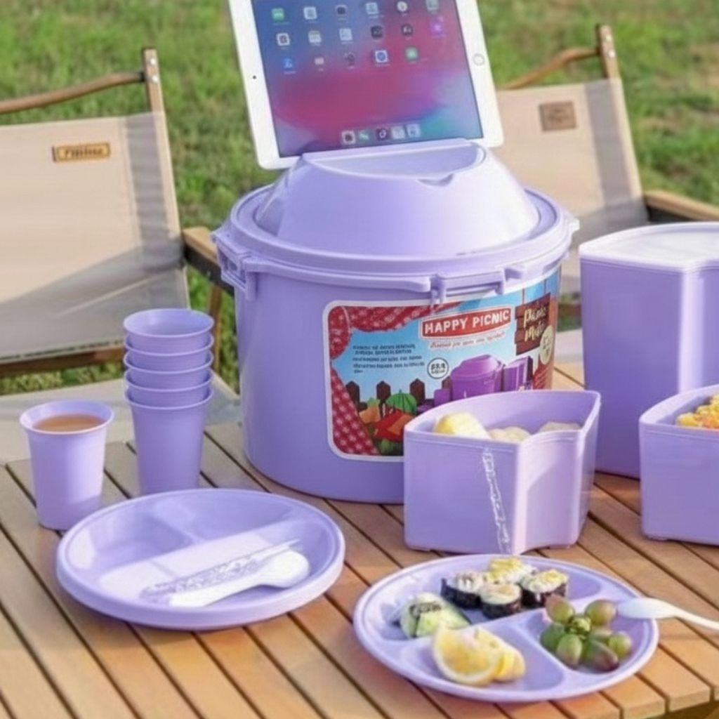 READY SIAP KIRIM Original from malaysia 32 set in 1 picnic mate sunnyware pony picnicmate rantang set bekal piknik ember set wadah bekal piknik portable picnic tableware tupperware wadah piknik set HAPPY PICNIC RANTANG PIKNIK SET PIRING GELAS SENDOK GARPU