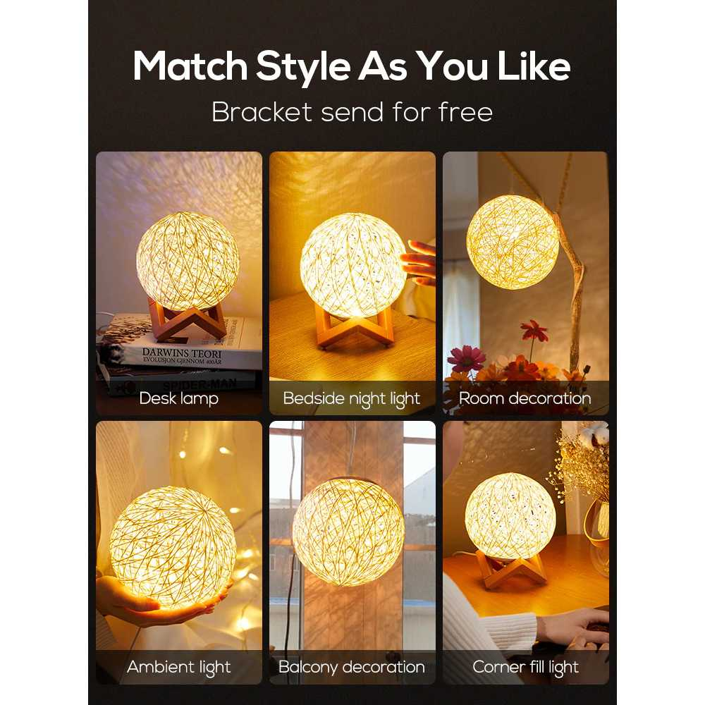 Homecreativez Lampu Tidur Bola Rotan 3D Night Light USB Aesthetic