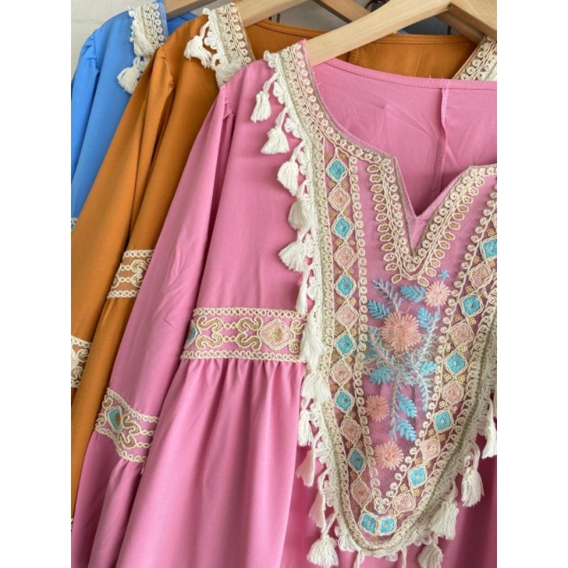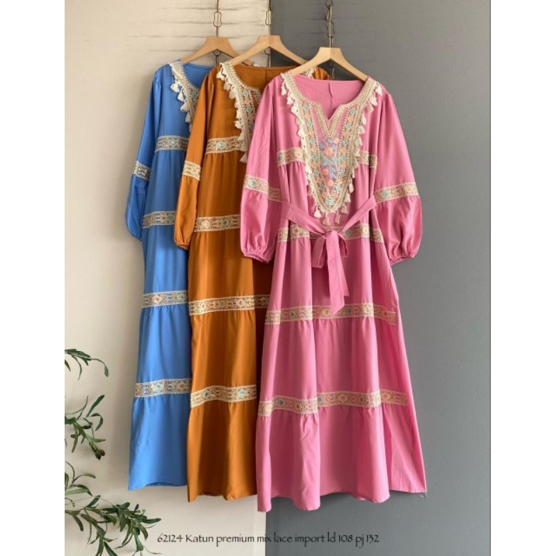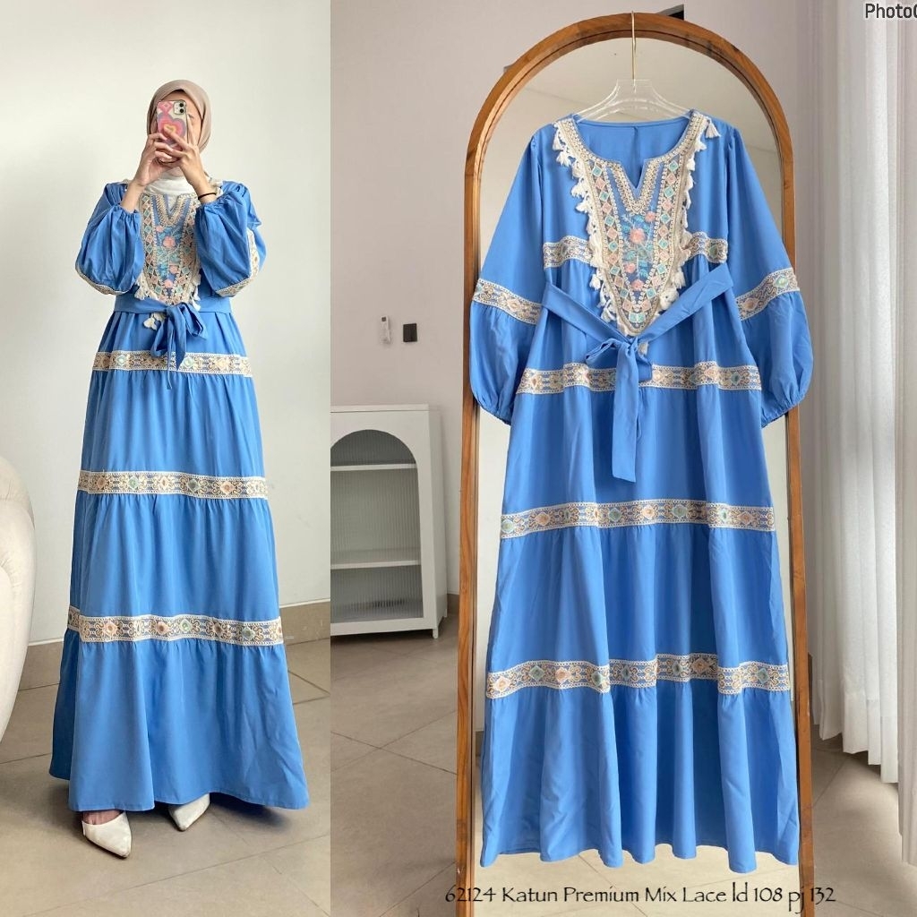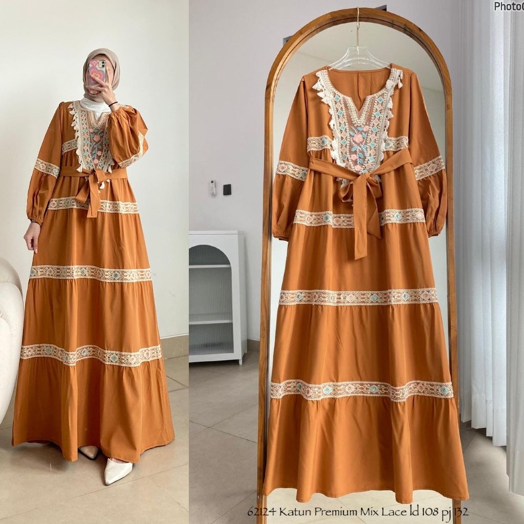- Lucky Lacky Boutique - Long Dress Katun Premium Mix Lace Import Gamis Abaya Bordir Brukat Premium Cantik Kekinian