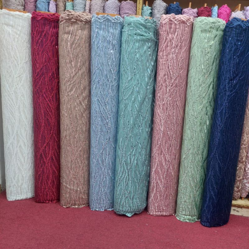 Bahan Kain Tile Akar Sakura Terbaru Full Taburan Payet