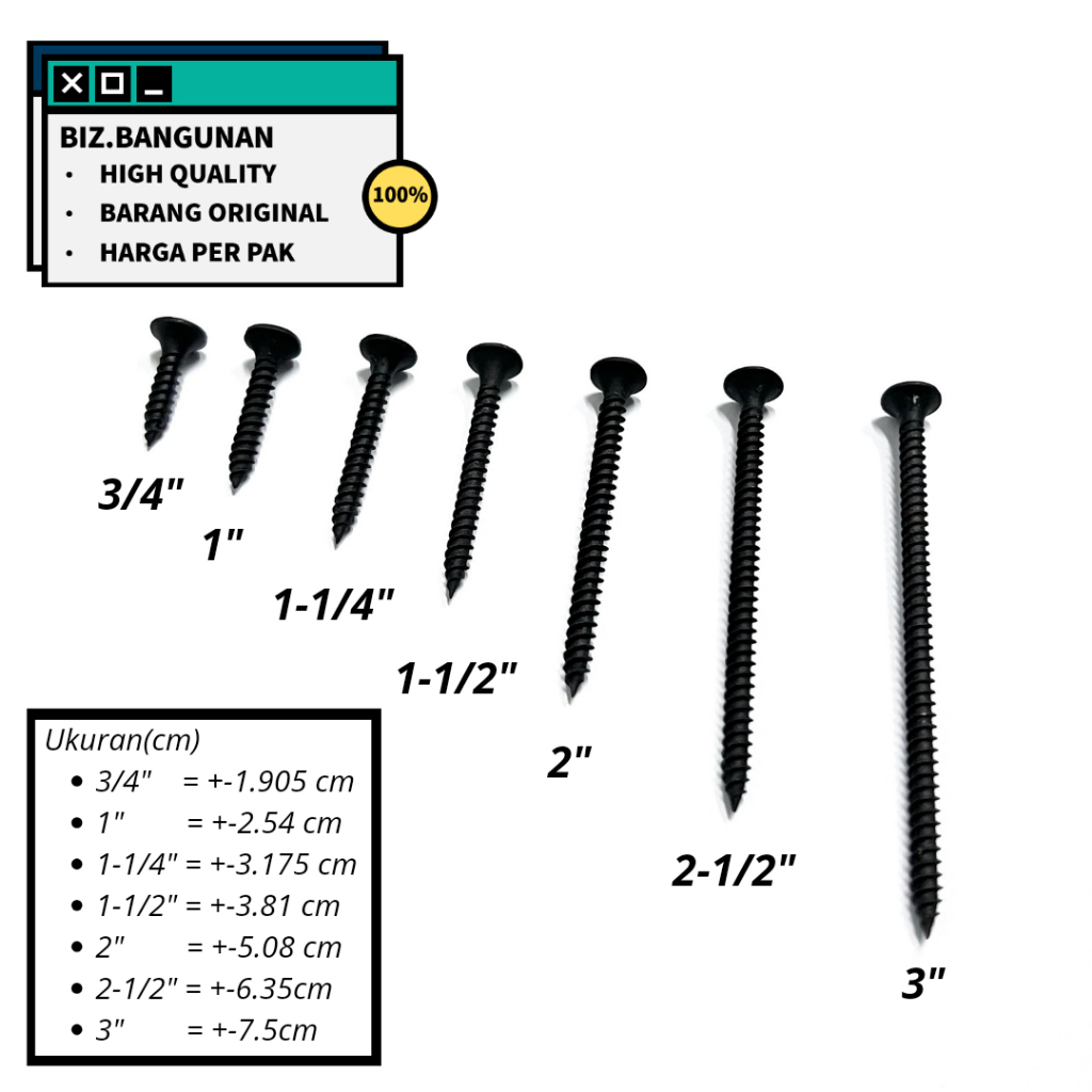 [1 KOTAK 900GR] SEKRUP GYPSUM BAJA - BAUT SKRUP KAYU DRYWALL SCREW