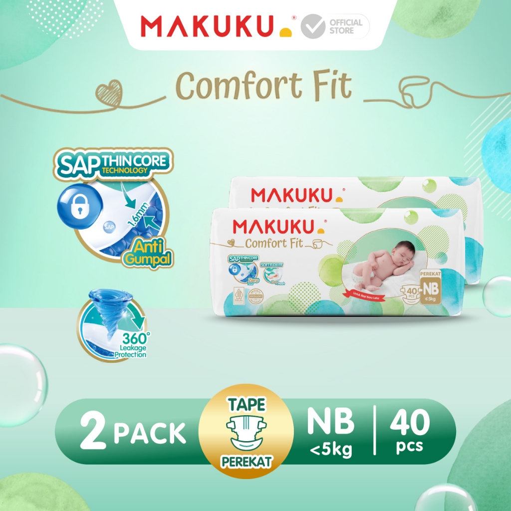 [2 PACK] MAKUKU SAP Diapers Comfort Fit Pants/Tape NB30/S28/M26/L24/Xl22/XXL20 Popok Bayi Tipis Extra Dry Anti Gumpal Mengunci Cairan Cepat Kering Type Celana/Perekat