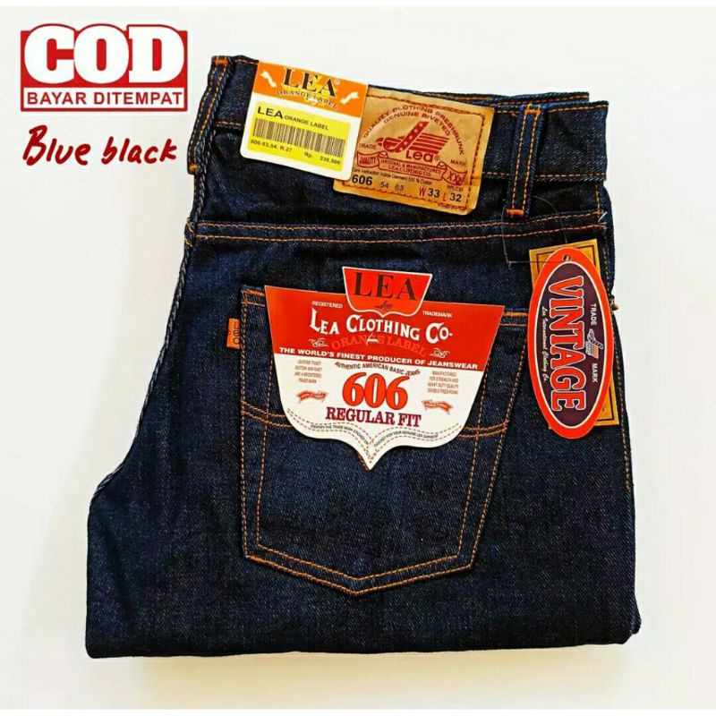 CELANA JEANS LEA celana lea standart pria reguler 606 Non Ori Non Street Full ACC - JAMIN HITAM GARMEN BIRUMUDA NAVY READY