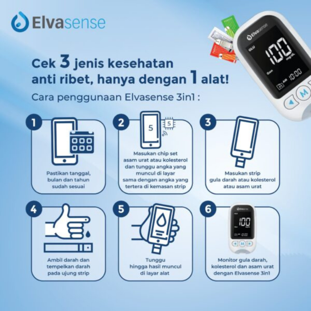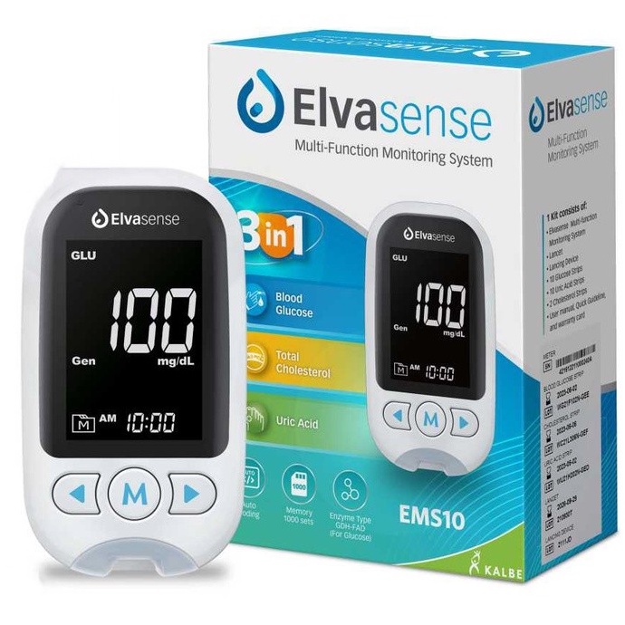 Paket Hemat Alat Cek 3in1 Kadar Gula Darah Asam Urat Kolesterol Elvasense 3in1 EMS10