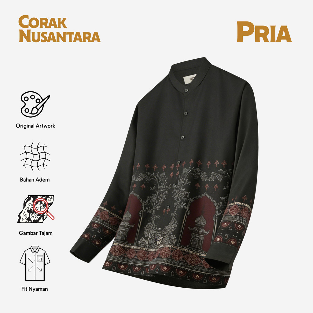 TELUSUR Corak Nusantara Kemeja Pria Lengan Panjang - Pintu Hitam