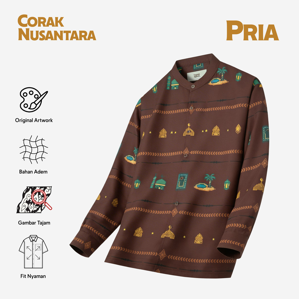 TELUSUR Corak Nusantara Kemeja Pria Lengan Panjang - Masjid Coklat