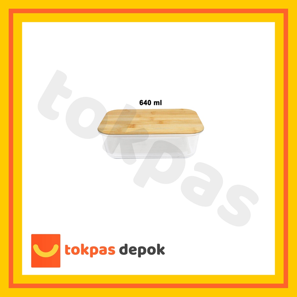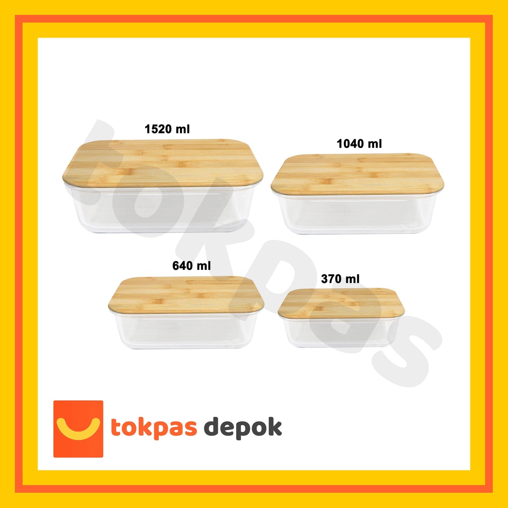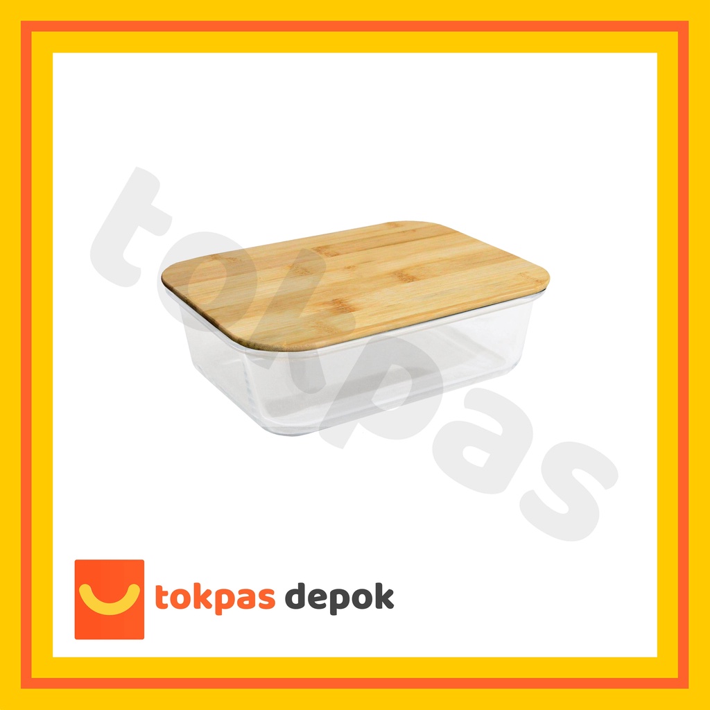Tempat Kotak Makanan Kaca Tutup Kayu Bambu / Glass Food Container With Bamboo Lid