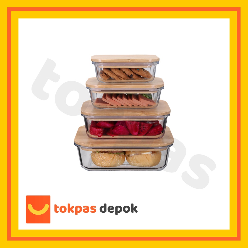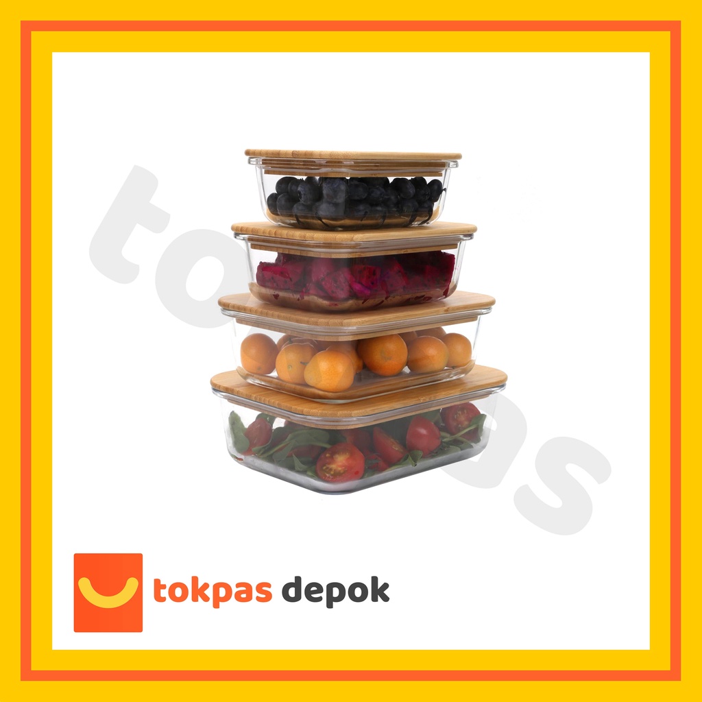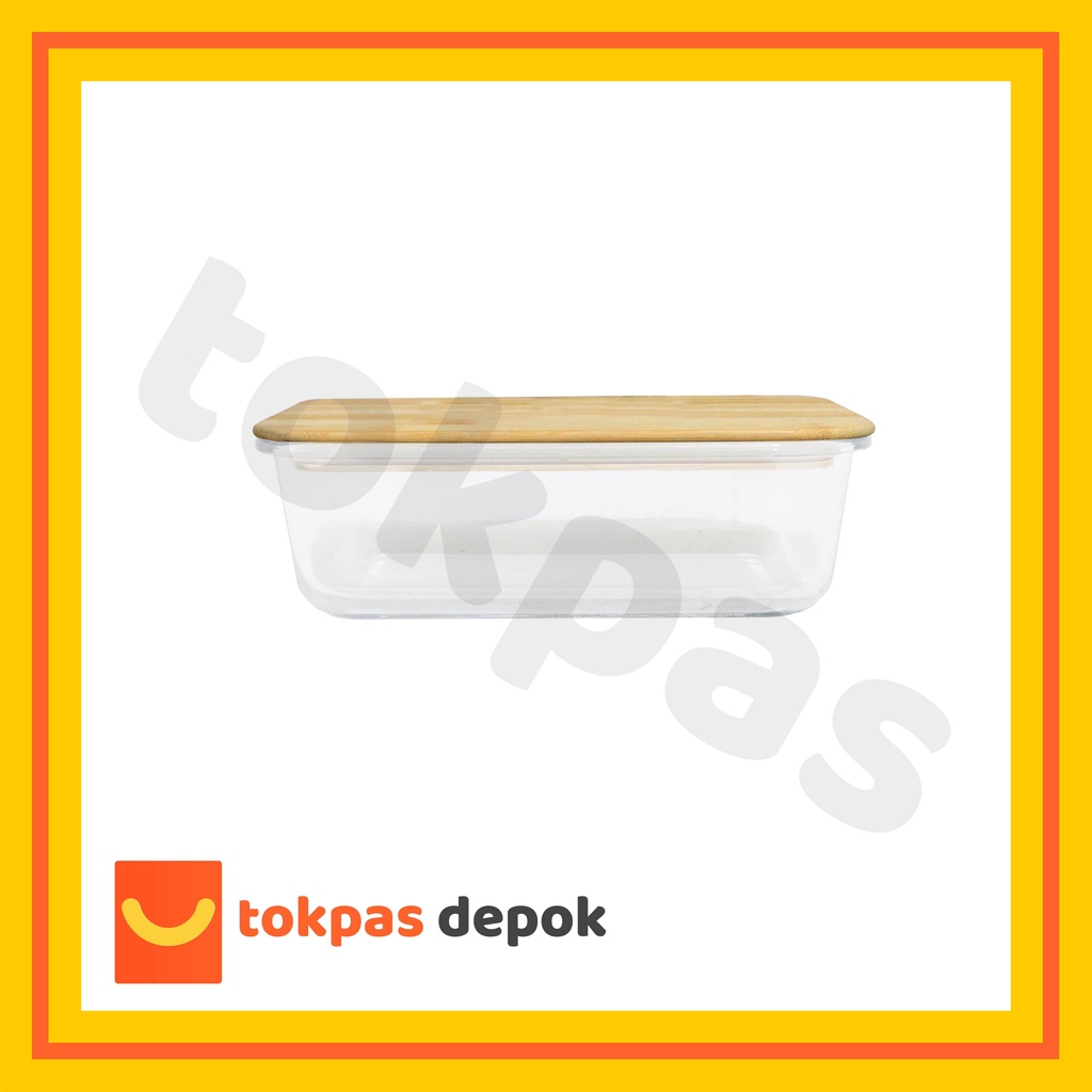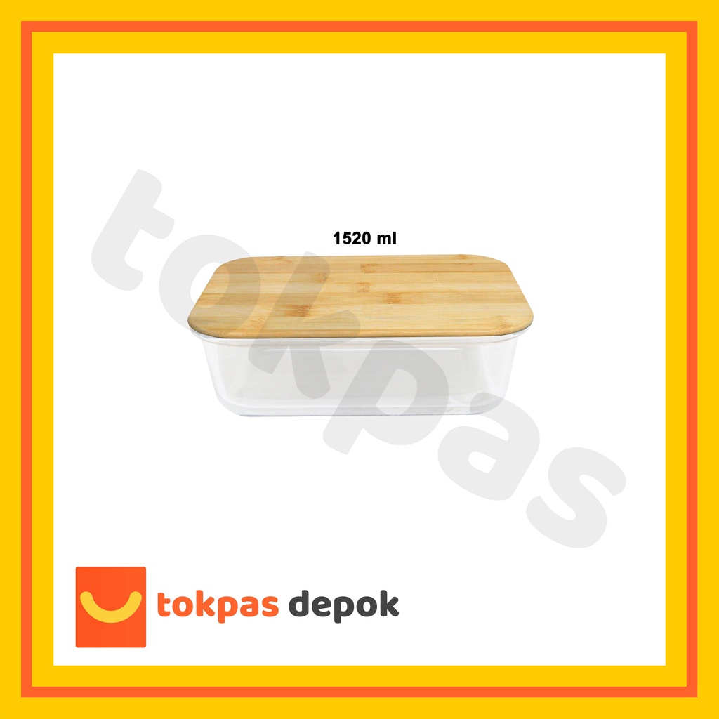 Tempat Kotak Makanan Kaca Tutup Kayu Bambu / Glass Food Container With Bamboo Lid