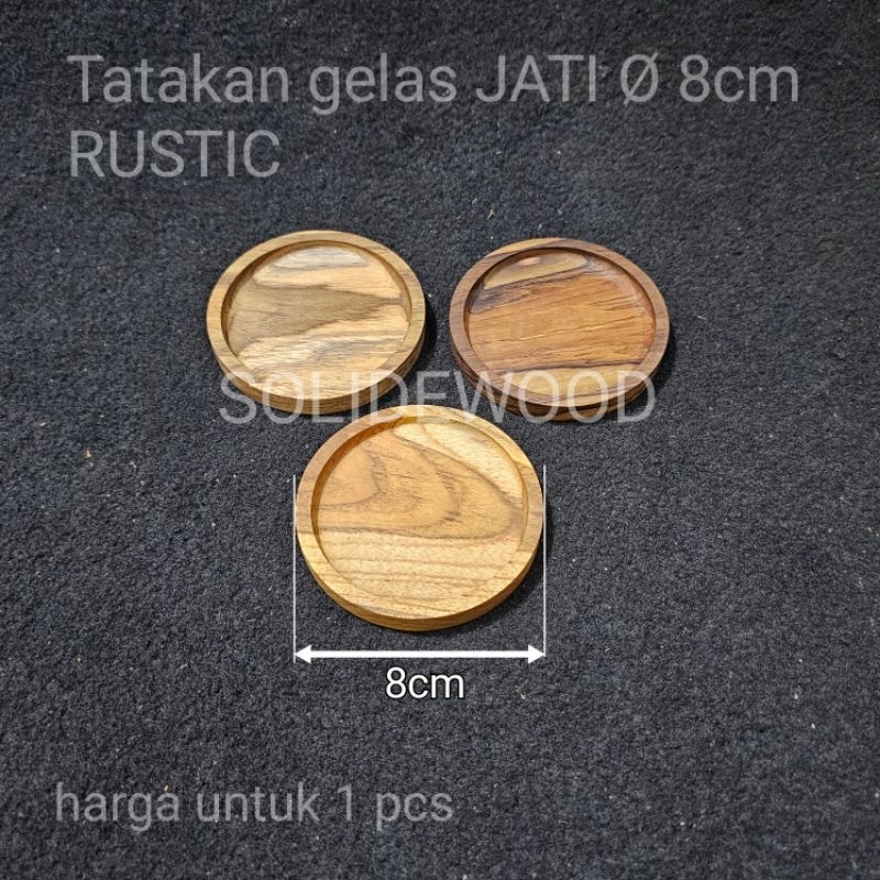 RUSTIC Round coaster tatakan gelas kayu JATI bulat 7cm 7,5cm 8cm 8,5cm 9cm 9,5cm 10cm 10,5cm
