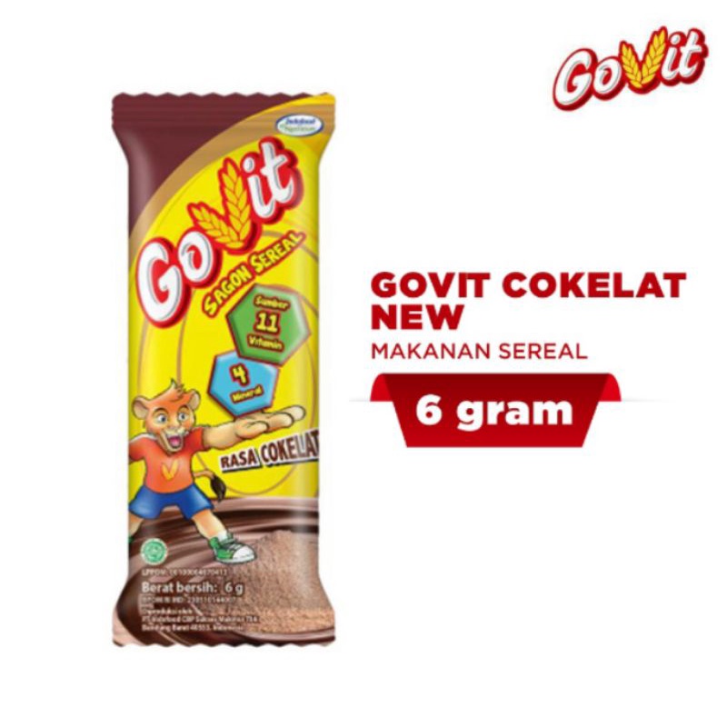 GOVIT Sereal Sagon Bubuk Instan 6g SATUAN Varian Rasa Baru Coklat Stroberi Keju Cokelat