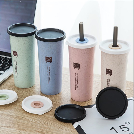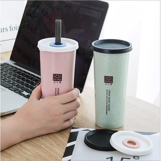 Botol Minum 2tutupan Pipet Sedotan 401-500ml / Cangkir Jerami Gelas Tangan