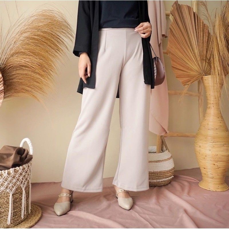 Celana Kulot Wanita Highwaist Kekinian Ala Korea Basic HW Pinggang Karet Premium Long Cullote Scuba