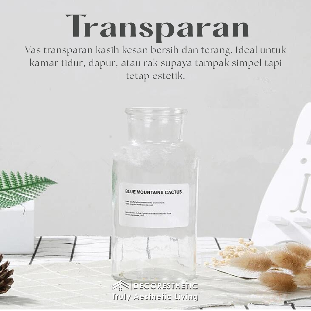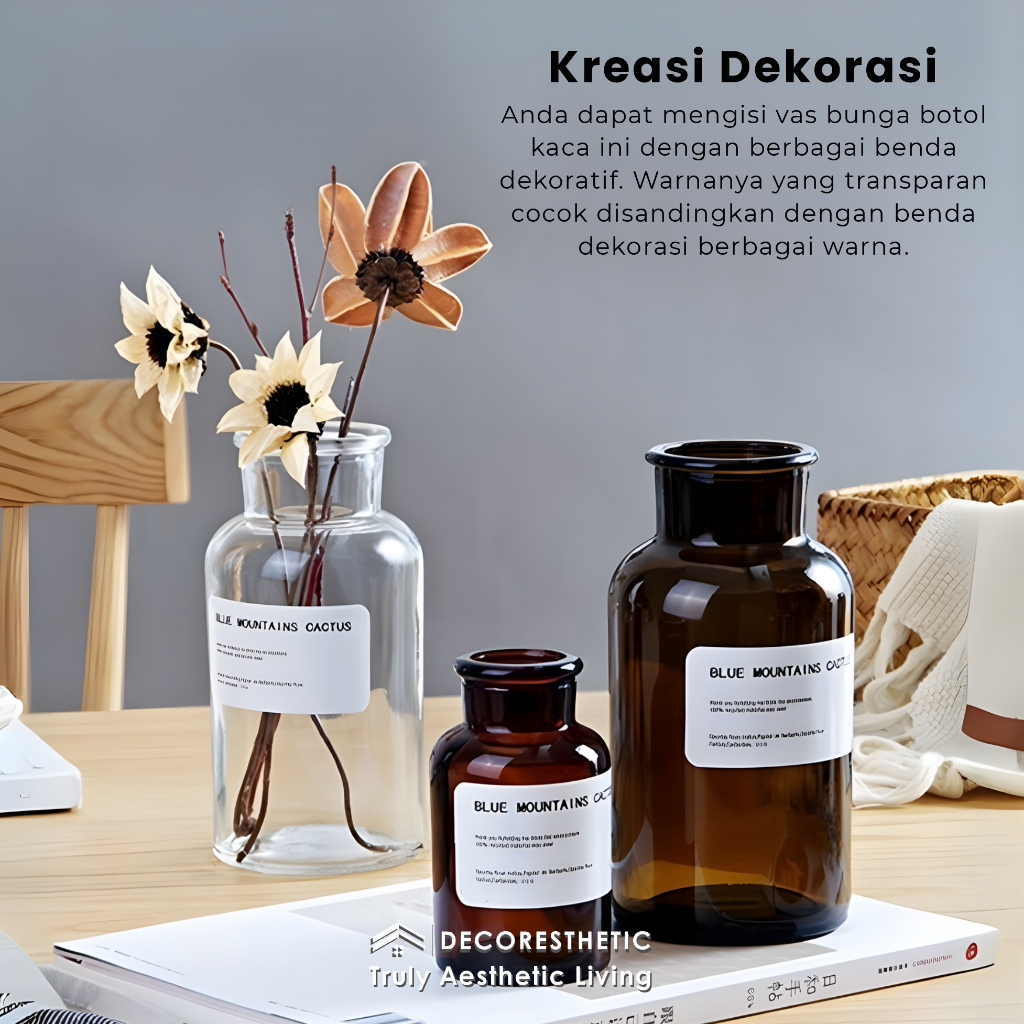 Decoresthetic Rumatika Vas Bunga Botol Kaca Classy Aesthetic Cantik Meja Ruang Tamu Hias