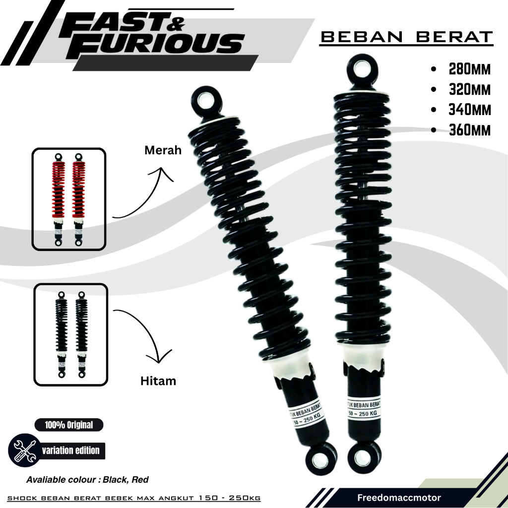Shock belakang motor bebek beban berat heavy duty 280 320 340 360 tahan beban 150-250kg