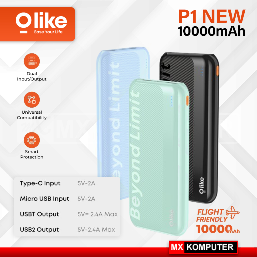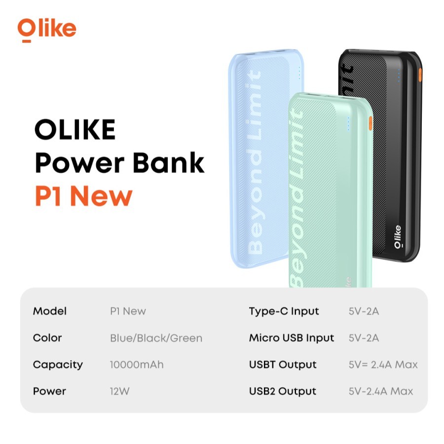 Powerbank Olike 10000mAh P1 New Dual USB Port LED Fast Charge