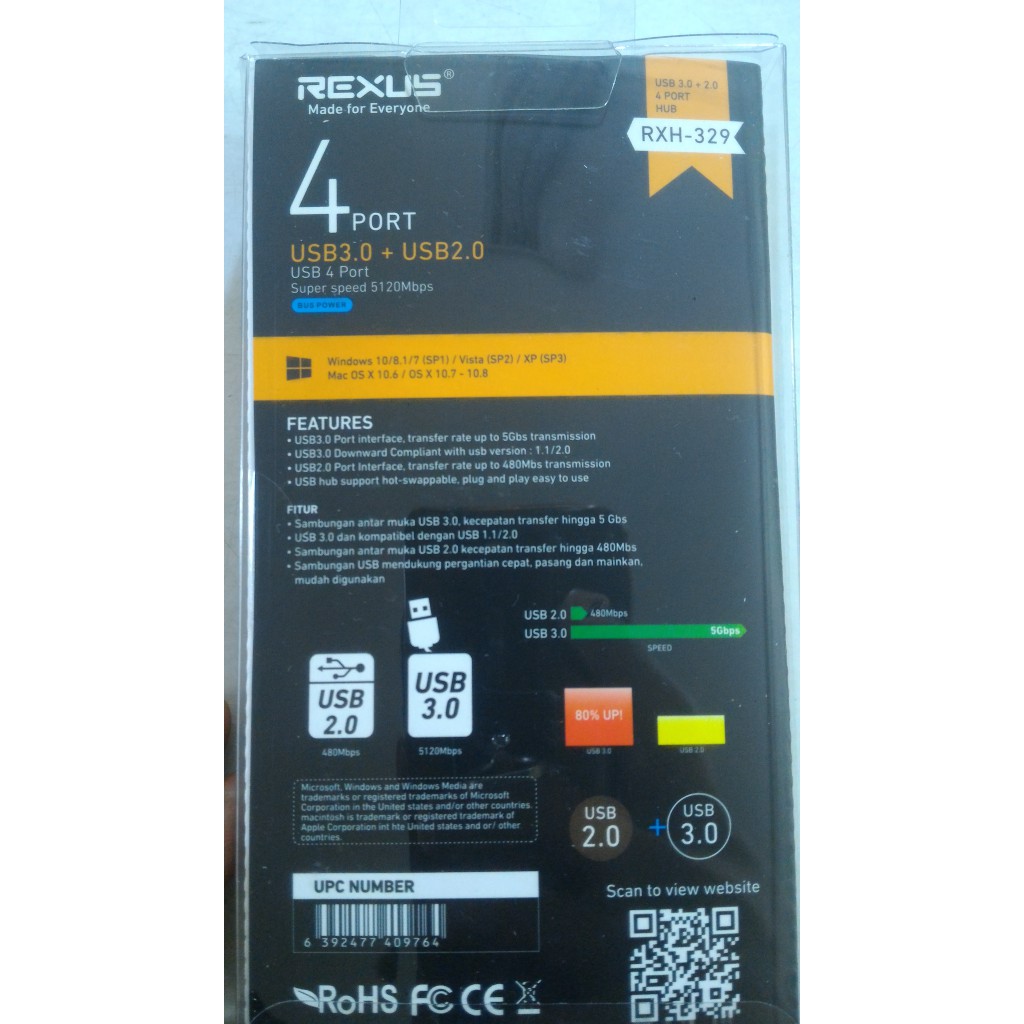 USB HUB Rexus 4 Port RXH-329 USB 3.0+USB 2.0