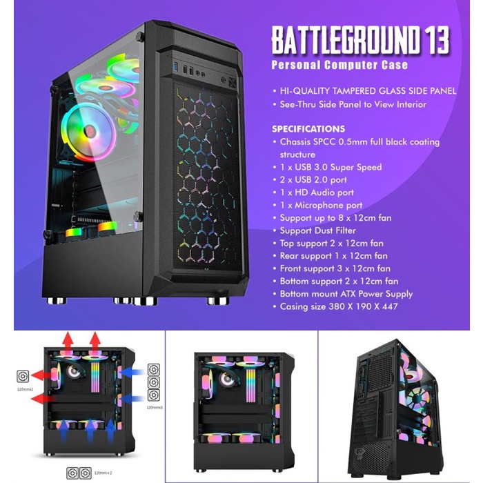 Simbadda Battleground 13 Tempered Glass Casing PC