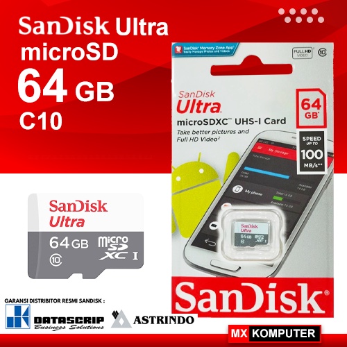 Memory Card MicroSD MIcro SD Sandisk Ultra Class 10 64GB 64 GB 100MB/s