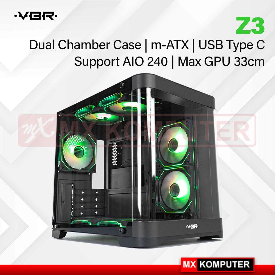 Casing VBR Z3 M-ATX USB Type C Tempered Glass Gaming Case
