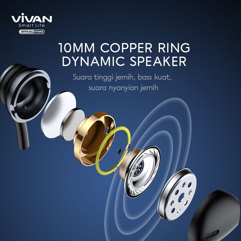 Headset VIVAN Q12 Wire Earphone Deep Bass Mic Konektor L AUX 3.5 mm