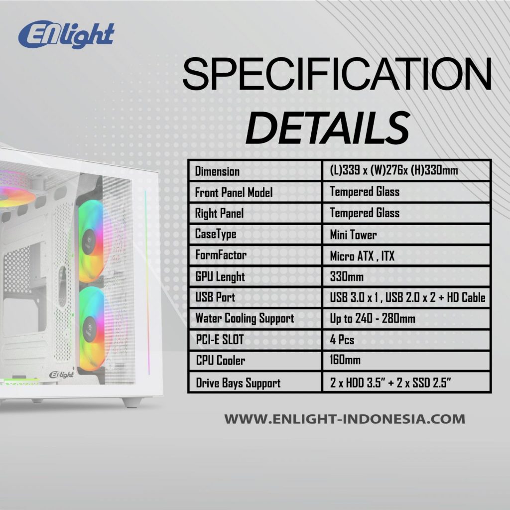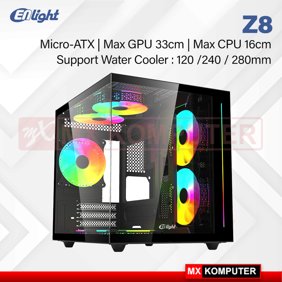 Casing ENLIGHT Z8 PC Case Tampered Glass M-ATX Support WaterCooling 240-280