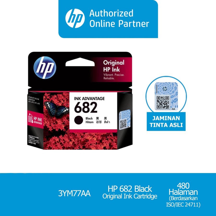 HP 682 Black Original Ink Catridge Tinta Printer Hitam Original