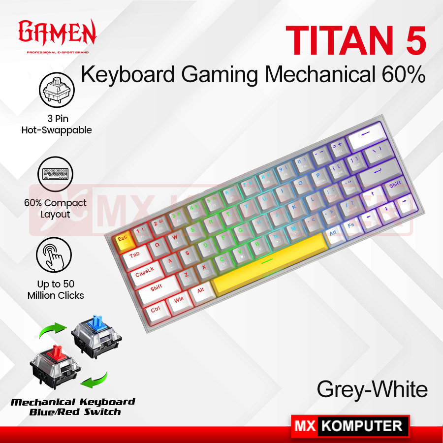 GAMEN Keyboard Gaming Mechanical 60% Titan 5 Type-C Anti Ghosting Titan V