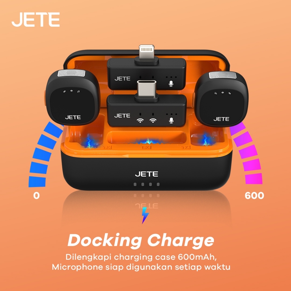 Mic Wireless JETE MP2 Double Receiver Type C & Lightning Dock Charger