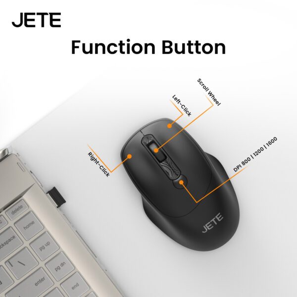 Mouse JETE MS205 Mouse Wireless Bluetooth Rechargeable 1600Dpi Ergonomic