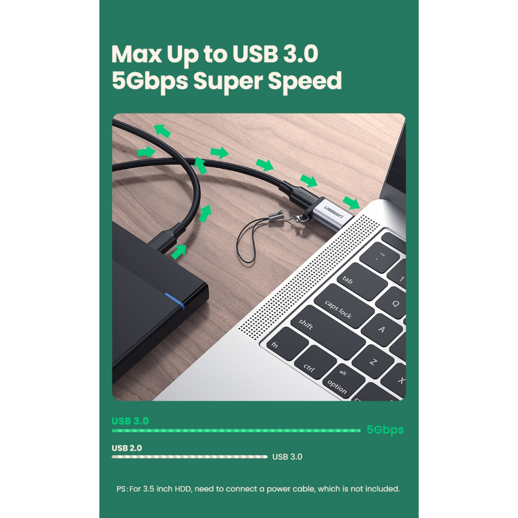 UGREEN OTG Adapter USB Type C Female To USB A 3.0 Male Max 5Gbps 50533