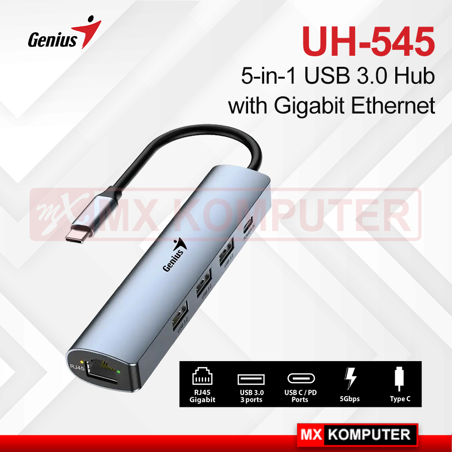 Genius UH-545 Type-C To USB 3.0 Hub With LAN Gigabit Ethernet
